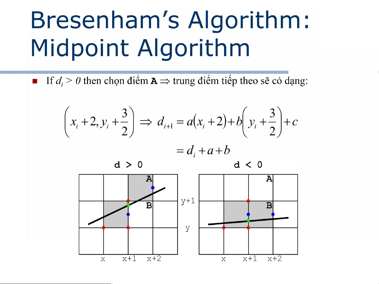 nếu d < 0 điểm A được chọn. yi+1 = yi + 1 Trong trường