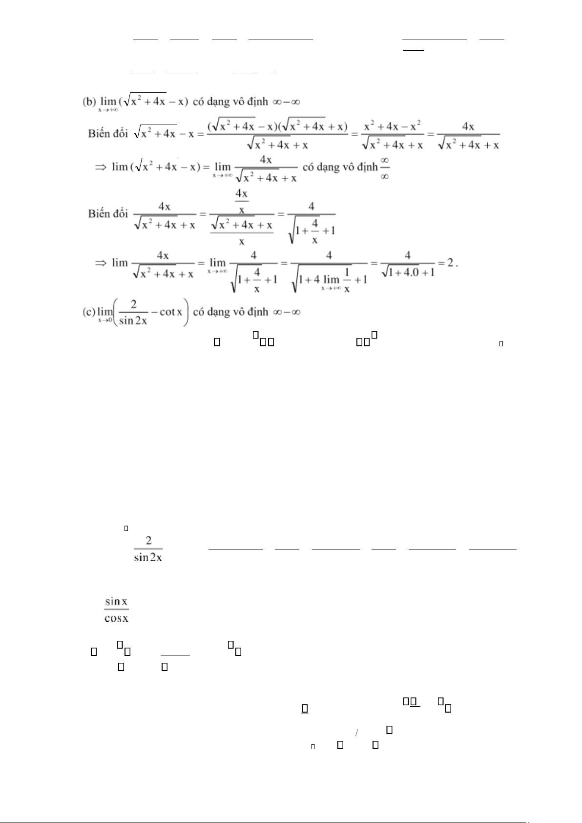 limx→2 x 1− 2 − x2 − 4 = limx→2 x 1+ 2 = 14 . x→+ x→+ Biến ổi − cotx = 2 − cosx = 1 − cosx = 1− cos x2 = sin x2 2sinxcosx sinx sinxcosx sinx sinxcosx sinxcosx = = tan x lim