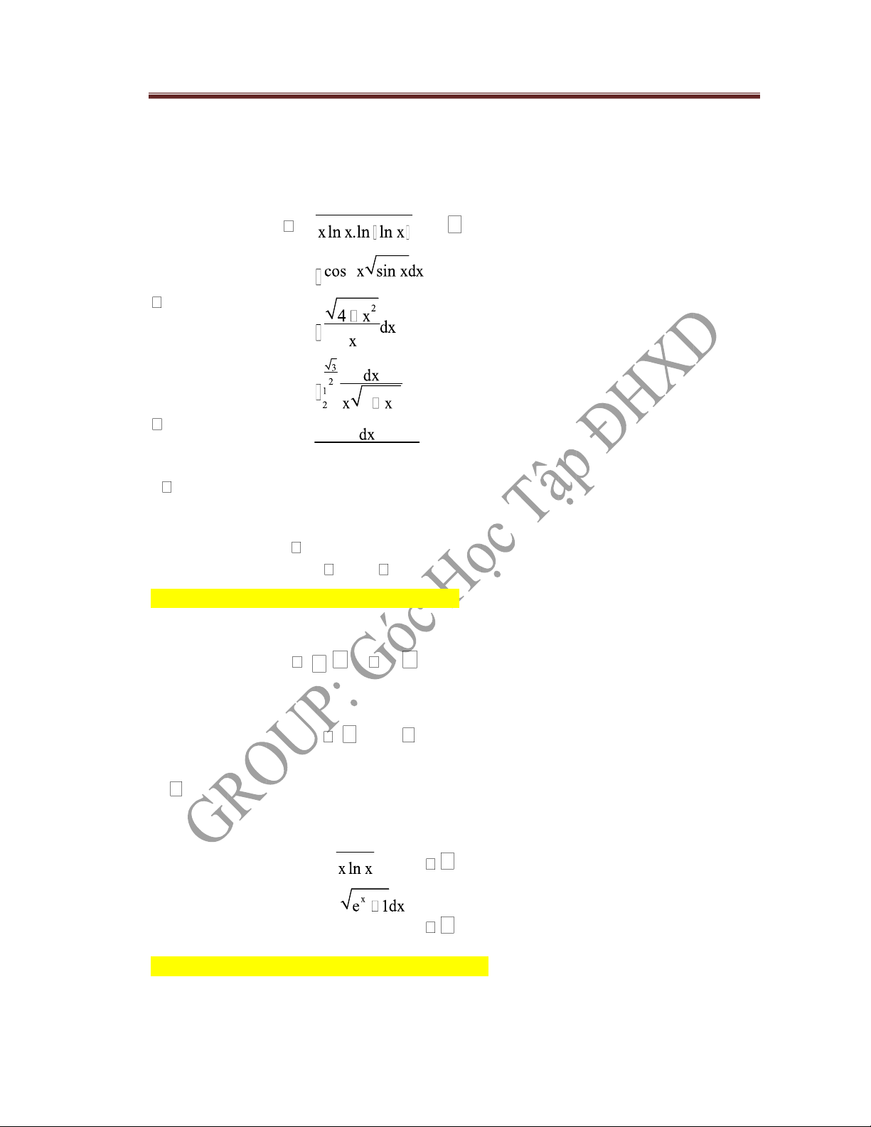 a) f x( )  (x2   x 1).e2x  c) f x( )  x2.sin3x 2 x  b) f x( )  sin3 .cos2x  x    d) g( )x     1 x  II) Chương 3: Tích Phân  8  16        lOMoAR cPSD| 58833082