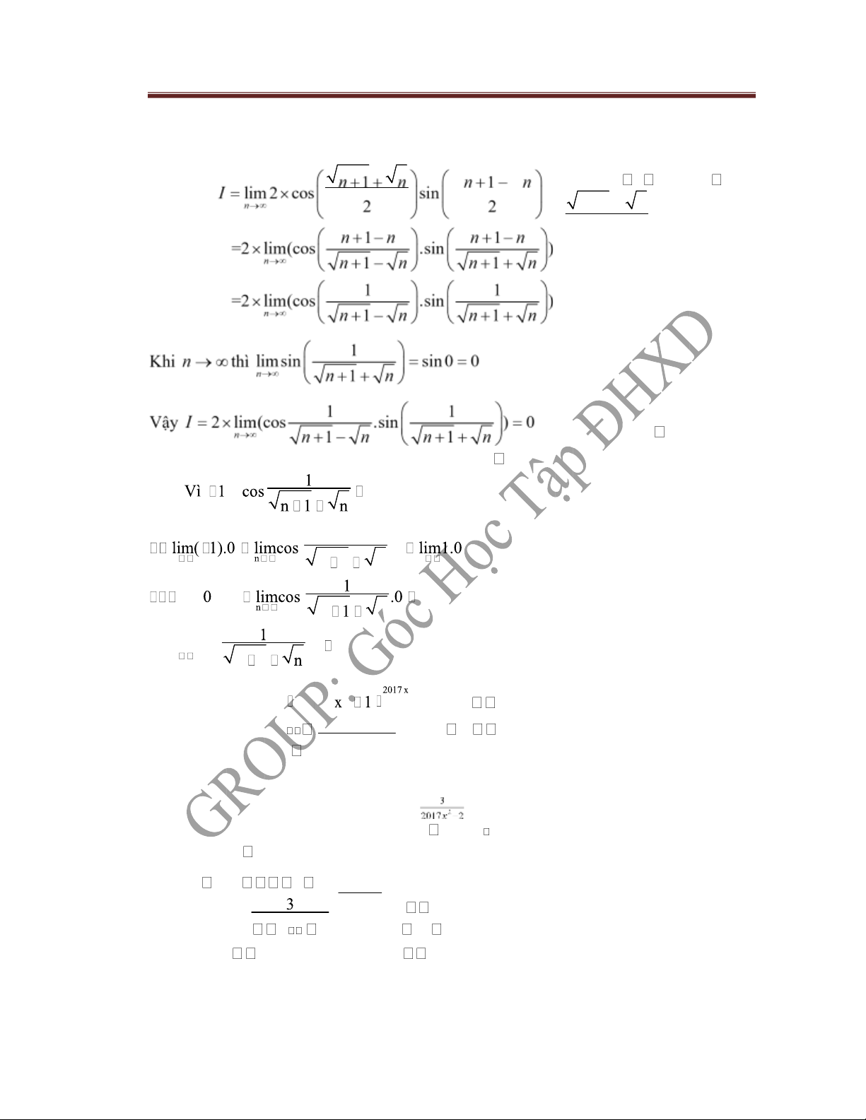 CUỐI KỲ CÁC NĂM GẦN ĐÂY VÀ LỜI GIẢI MỘT SỐ BÀI MẪU.        n  1 n     n            1           1          .0    n      n 1   n   n           0       n n    .0 0   n    n 1     2    2   2017    limcos