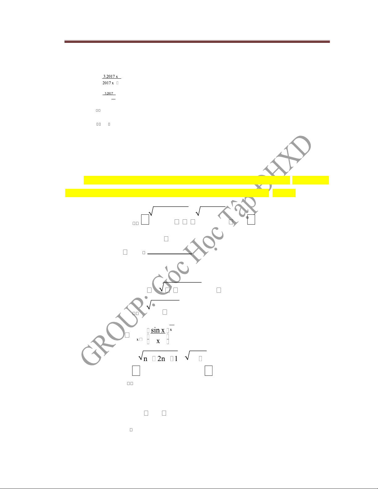 CUỐI KỲ CÁC NĂM GẦN ĐÂY VÀ LỜI GIẢI MỘT SỐ BÀI MẪU.        2   2   2  lim   =ex    lim  x     2017    =e  x2     =e3
