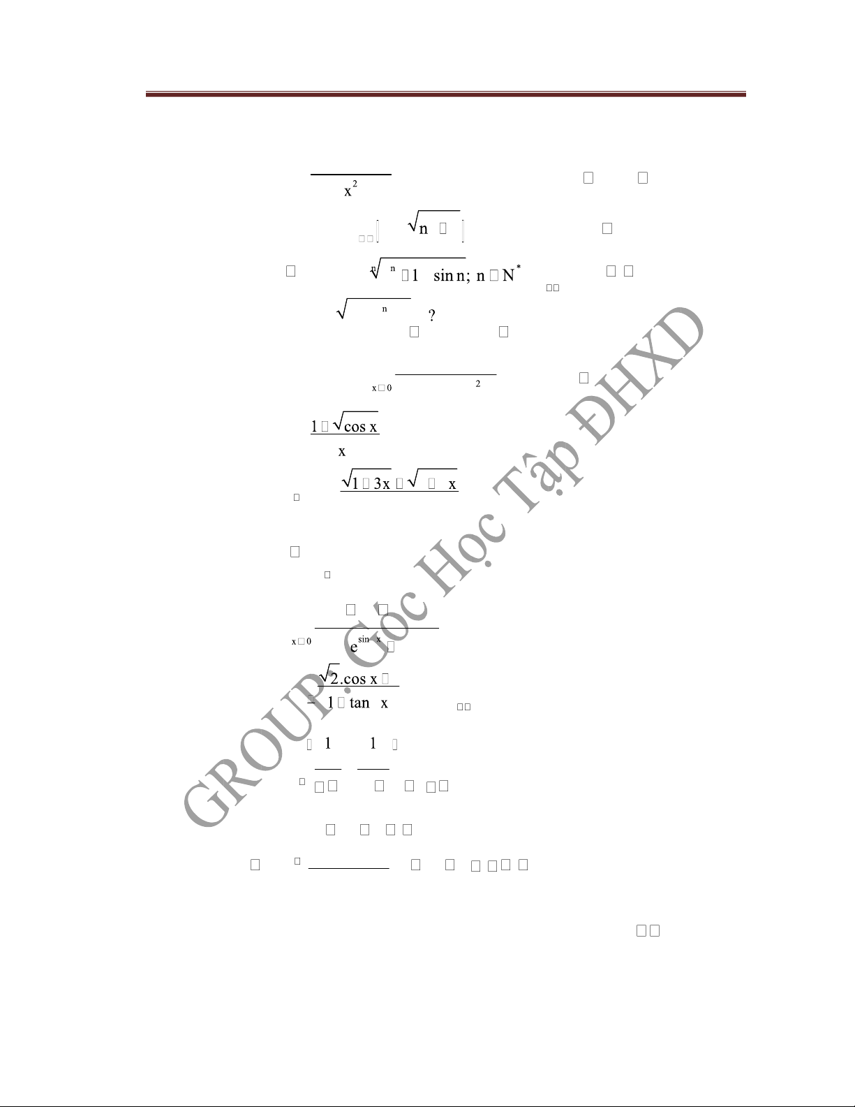 Bài 6. (K64) Cho dãy số xn  n 2n   1 sin ;n n N *  Bài 7. (K63) Tính lim n  n  2016n  1  1  2          Bài 8. (K64) Tính I     lim        0  4  2  4      n 1     Bài 9. (K63) Tính lim    n     x  ln(1 x)  Bài 10 (K63) Tính lim  x 0  3          lOMoAR cPSD| 58833082