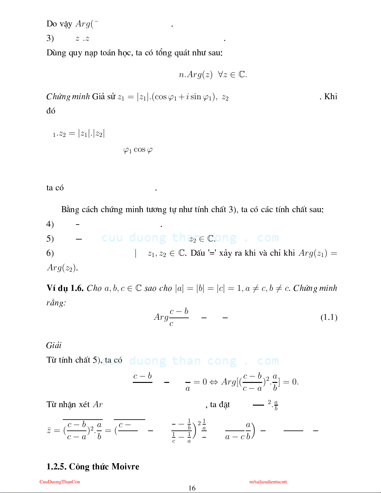 Arg(z) = 0 ↔ z ∈ R ↔ ¯z = z z = ( c−b )2.a Tõ nhËn xt , ta ®Æt c−a b c − b a c − b ¯a 1 − 1 2 1 b − c a2 b c − b 2a ¯ z = ( )2. = ( )2. = c b a = = = z. c − a b c − a ¯b 1 − 1 1 a − c b a c − a b c a b 2 1.2.5. C«ng thø Moivre CuuDuongThanCong.com