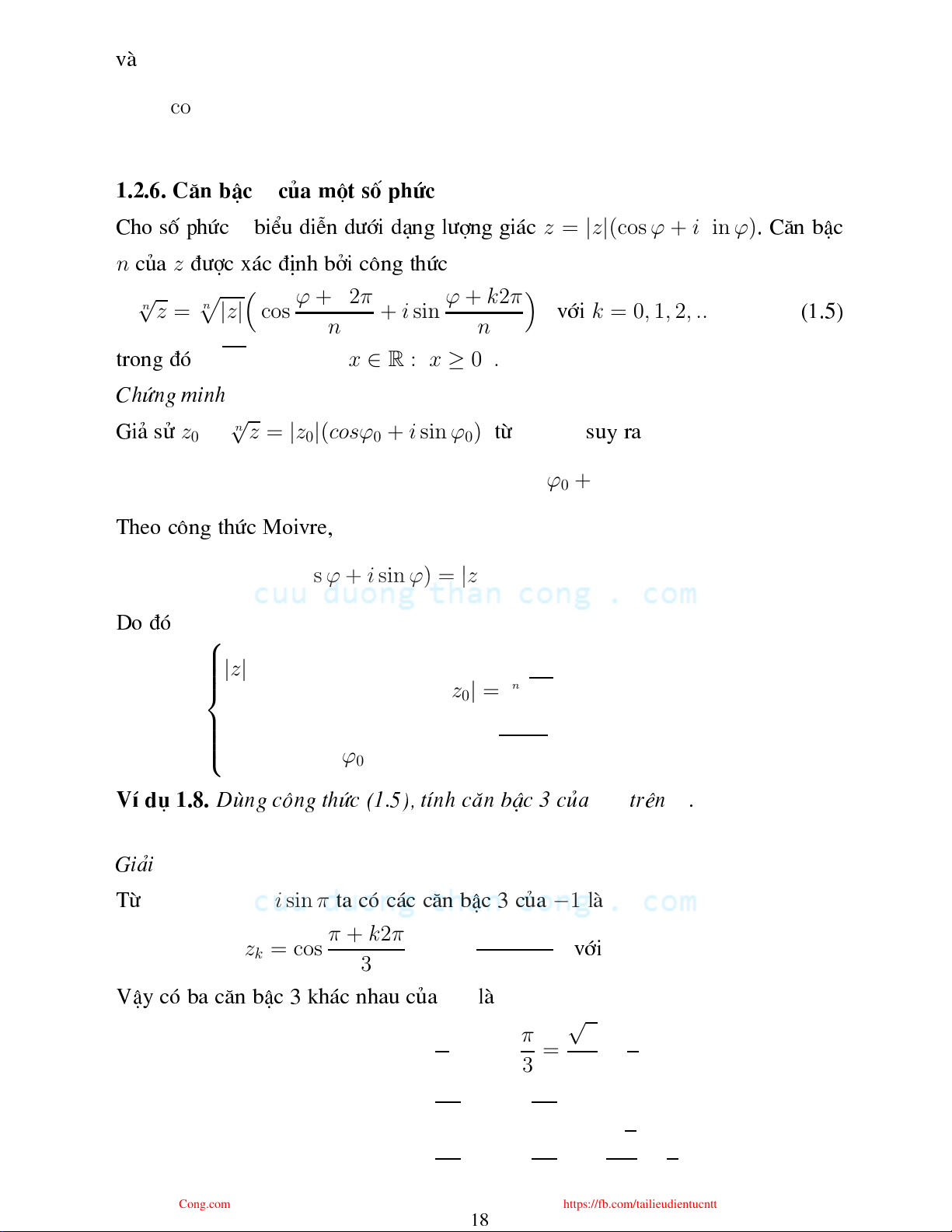 https://fb.com/tailieudientucntt 16 z z = |z|(cos ϕ + i sin ϕ) Cho sè phø ®î biÓu diÔn díi d¹ng lîng gi¸ , ta 3 ã «ng thø Moivre