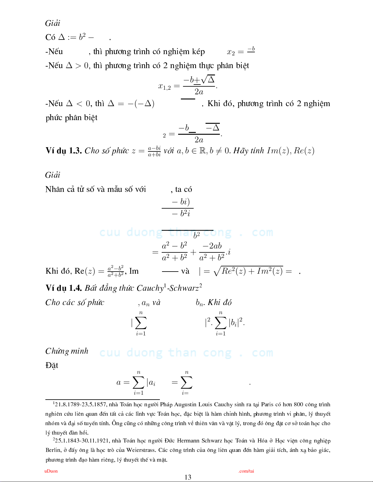 |x + y| ≤ |x| + |y| ∀x, y ∈ C k) . Chøng minh BiÓu diÔn ¸ sè phø díi d¹ng hÝnh t¾ vµ dïng ®Þnh nghÜa 1.2. C VÝ d 1.2. Gi¶i vµ biÖn luËn ph¬ng tr×nh sau trªn tËp ¸ sè phø ax2 + bx + c = 0 a 6= 0. víi CuuDuongThanCong.com