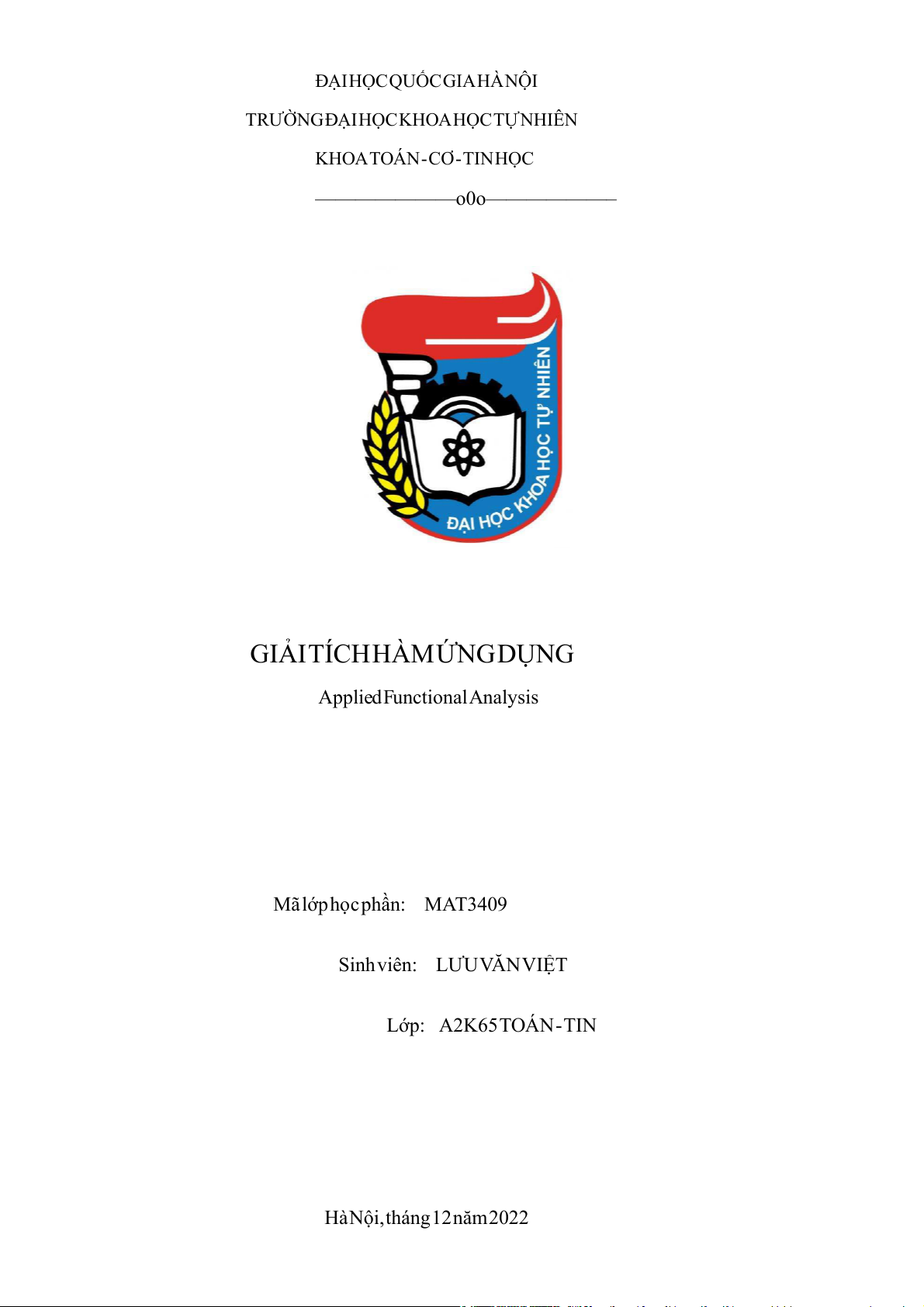 ———————o0o——————– GIẢITÍCHHÀMỨNGDỤNG AppliedFunctionalAnalysis Mãlớphọcphần: MAT3409 Sinhviên: LƯUVĂNVIỆT Lớp: A2K65TOÁN-TIN HàNội,tháng12năm2022 Mụclục Chương1 Tậphợp 5