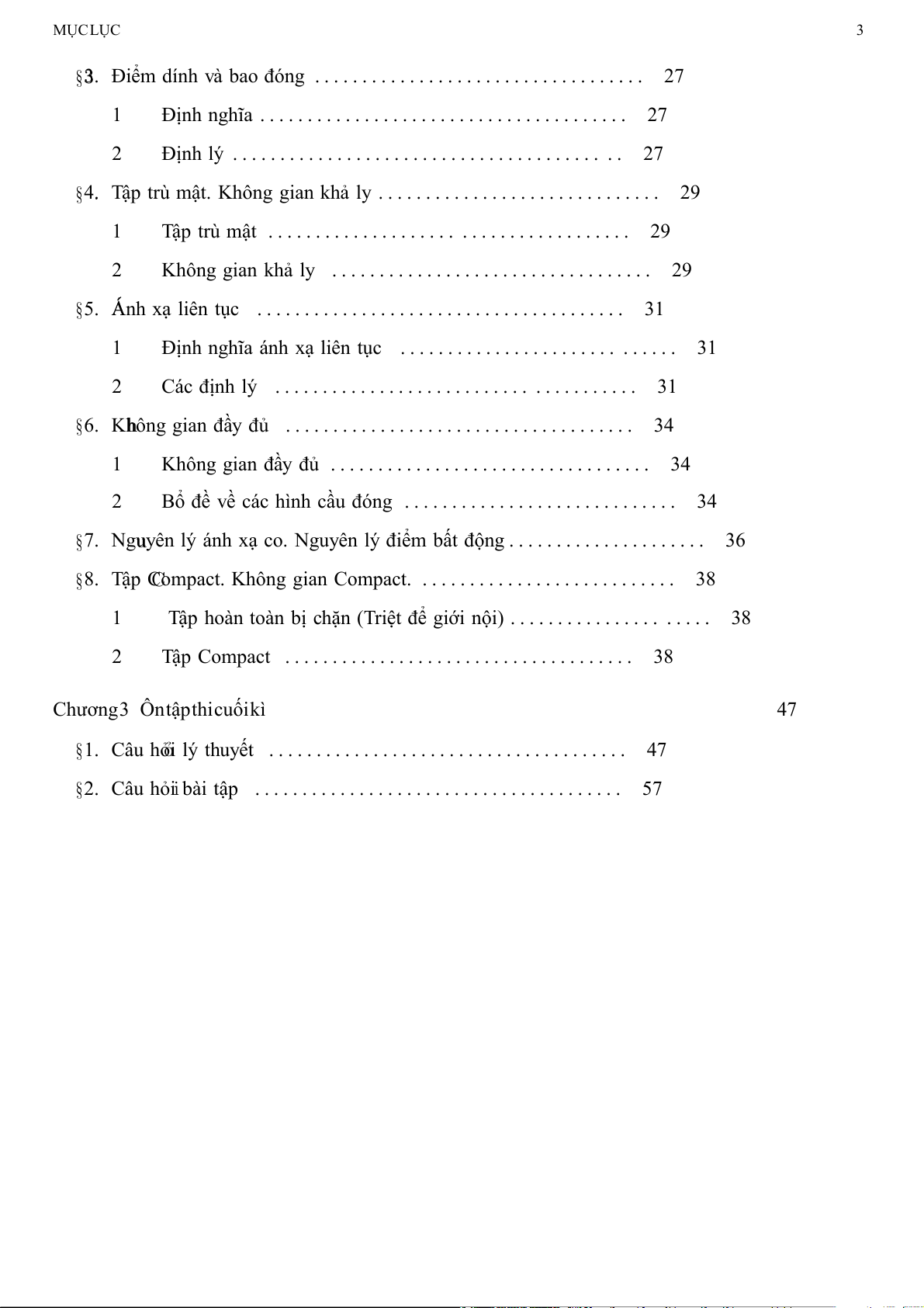 Tập Compact . . . . . . . . . . . . . . . . . . . . . . . . . . . . . . . . . . . . . 38 Chương3 Ôntậpthicuốikì 47
