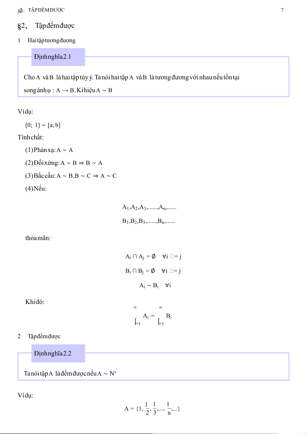 2. Tập đếm được . . . . . . . . . . . . . . . . . . . . . . . . . . . . . . . . . . . . . . . . 7 1