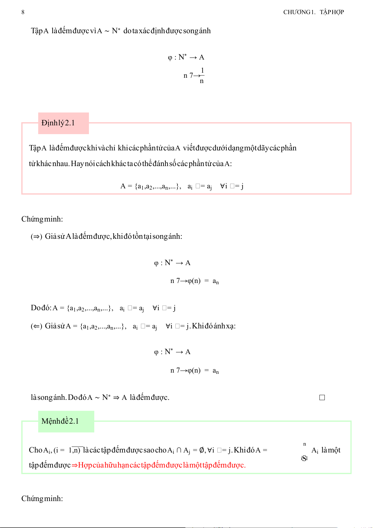 TậpA làđếmđượcvìA ∼ N∗ dotaxácđịnhđượcsongánh φ : N∗ → A 1 n 7→n Địnhlý2.1