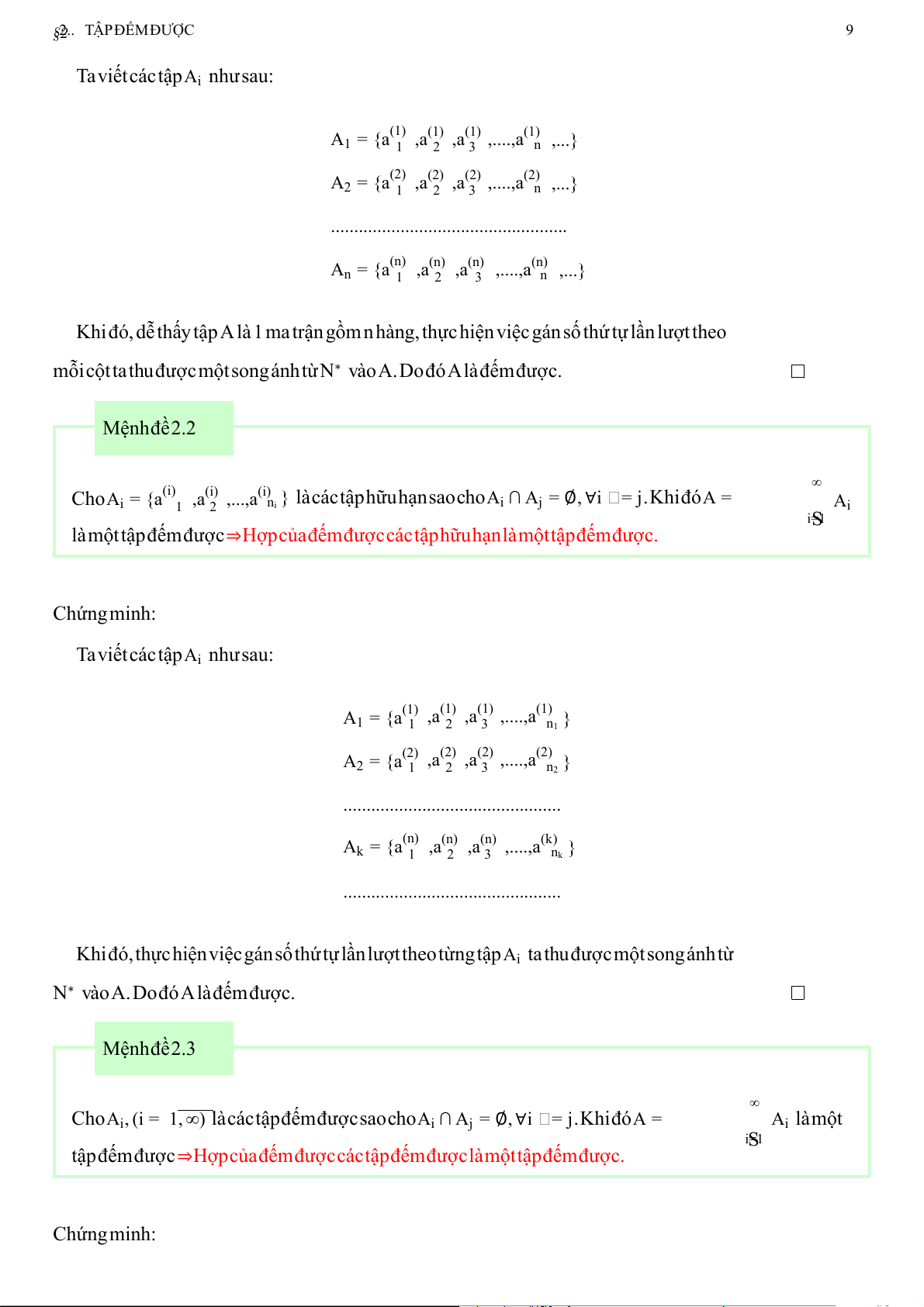TậpA làđếmđượckhivàchỉ khicácphầntửcủaA viếtđượcdướidạngmộtdãycácphần