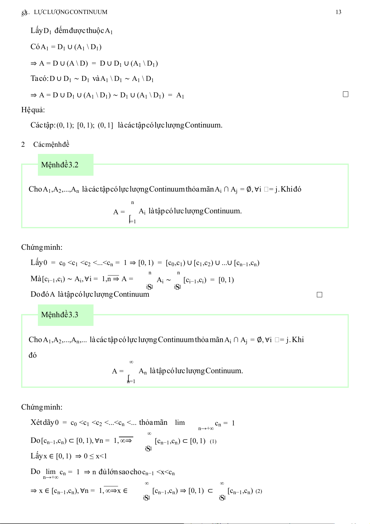 Cáctập:(0, 1); [0, 1); (0, 1] làcáctậpcólựclượngContinuum. 2 Cácmệnhđề Mệnhđề3.2