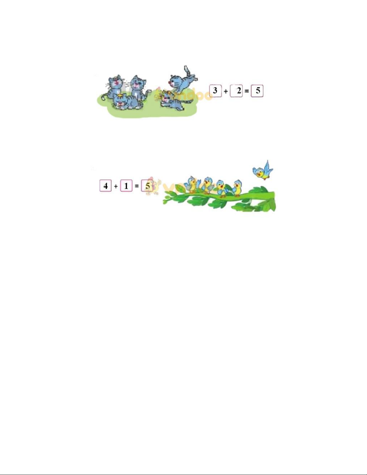 chú mèo. Vậy ta được phép tính 3 + 2 = 5 (Ba cộng hai bằng năm)