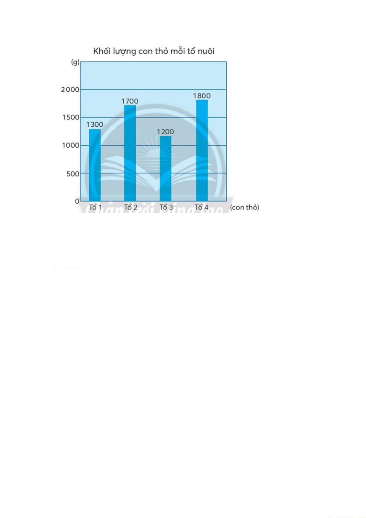 a) Trọng lượng của các con thỏ trong từng tổ như sau: - Tổ 1: 1.300g - Tổ 2: 1.700g - Tổ 3: 1.200g - Tổ 4: 1.800g