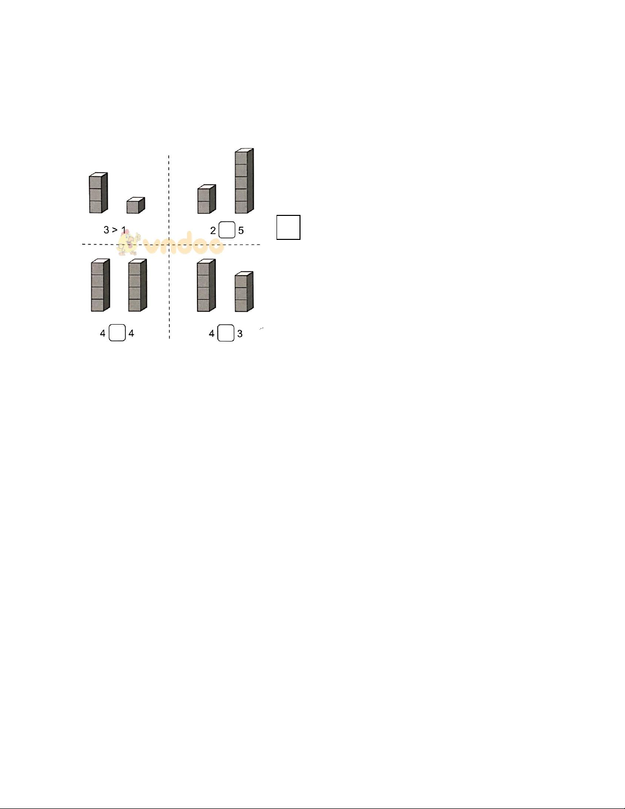 Hình A: bên trái có 2 ô vuông và bên phải có 5 ô vuông nên dấu cần điền là dấu “<”.