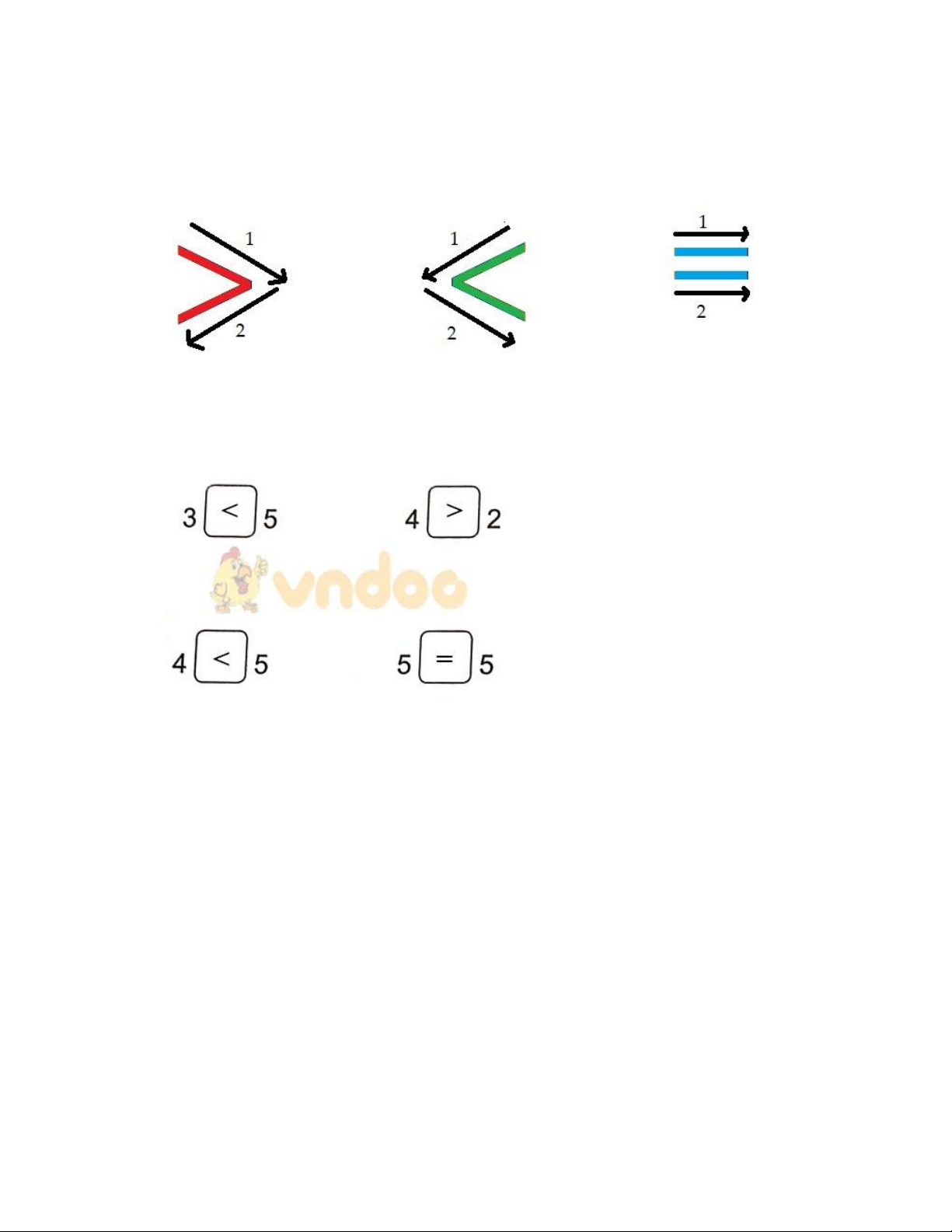 a, Các em học sinh nhớ lại cách viết các dấu <, >, = được nêu dưới đây để hoàn thành bài tập b,