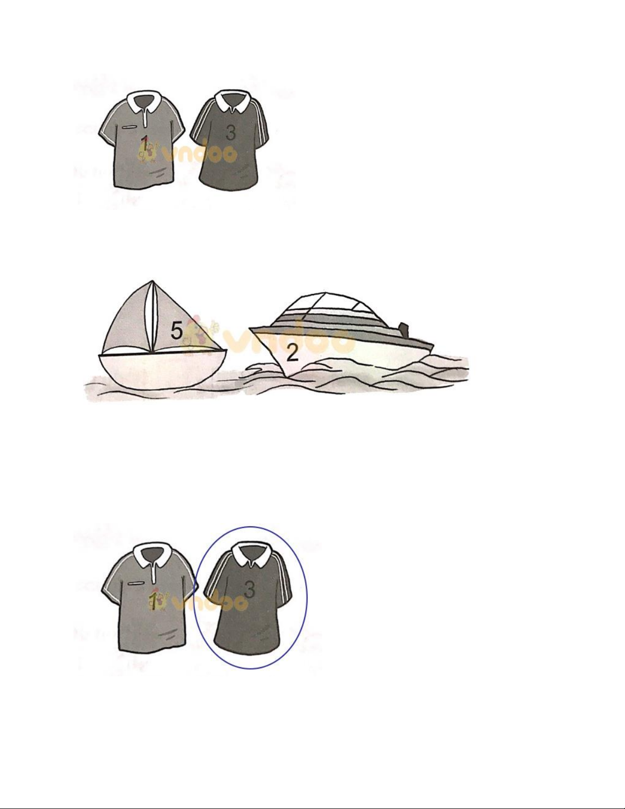 a, Chiếc áo bên trái ghi số 3 và chiếc áo bên phải ghi số 5 nên chiếc áo bên phải là vật có số lớn hơn.