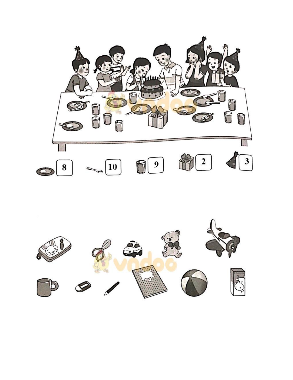 Bài 2 (Vở bài tập Toán lớp 1 trang 24) a, Khoanh vào 9 đồ vật:
