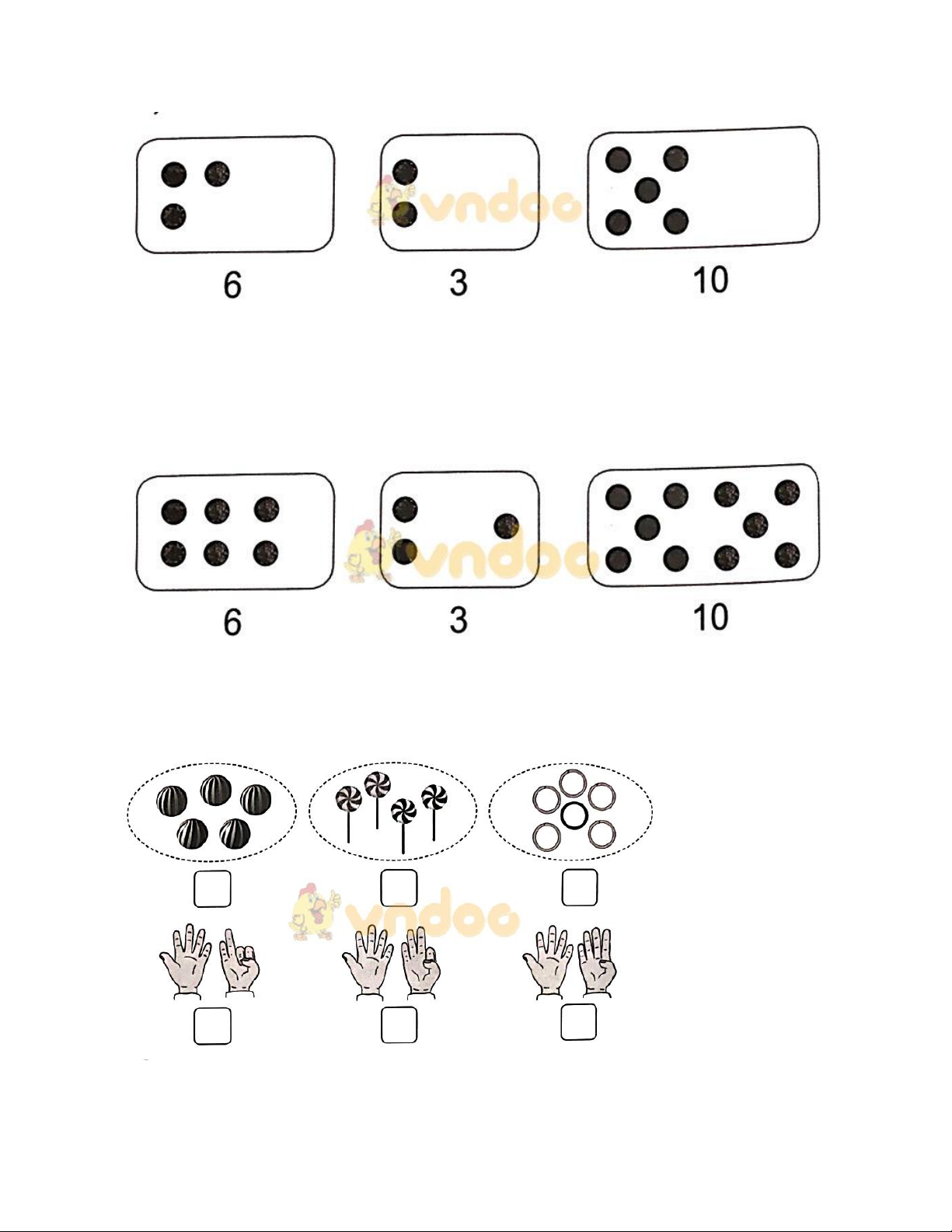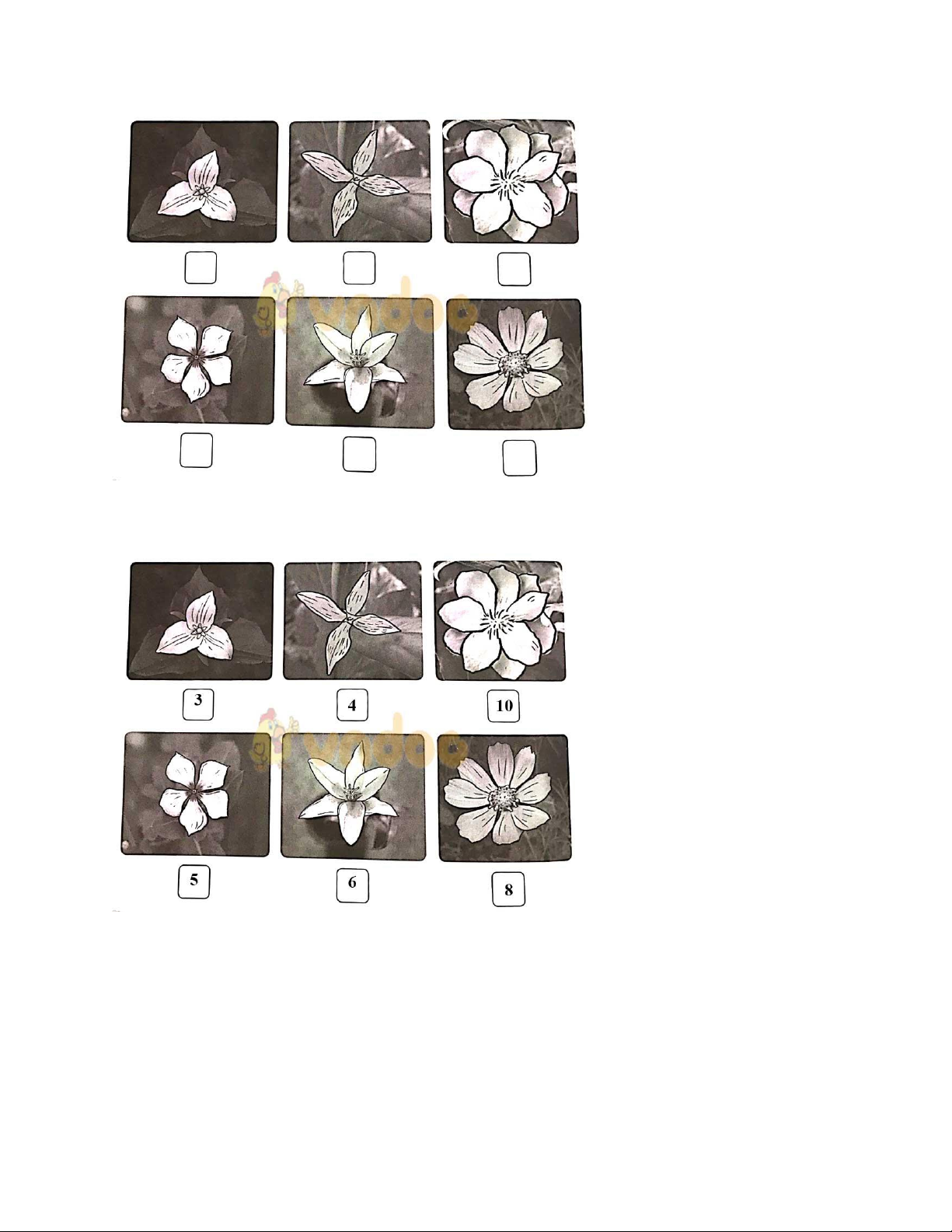 Đếm rồi viết số cánh của mỗi bông hoa vào ô trống: Lời giải: