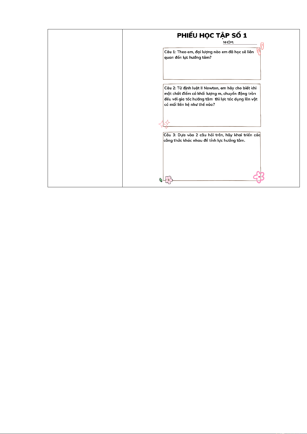 • Phiếu học tập số 1