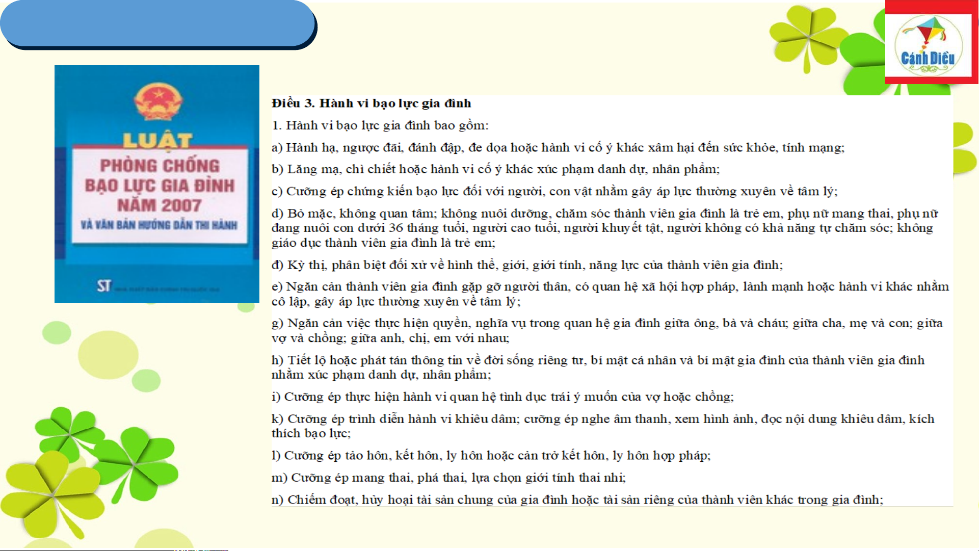 định pháp luật về phòng, chống bạo lực gia đình và hành vi nào