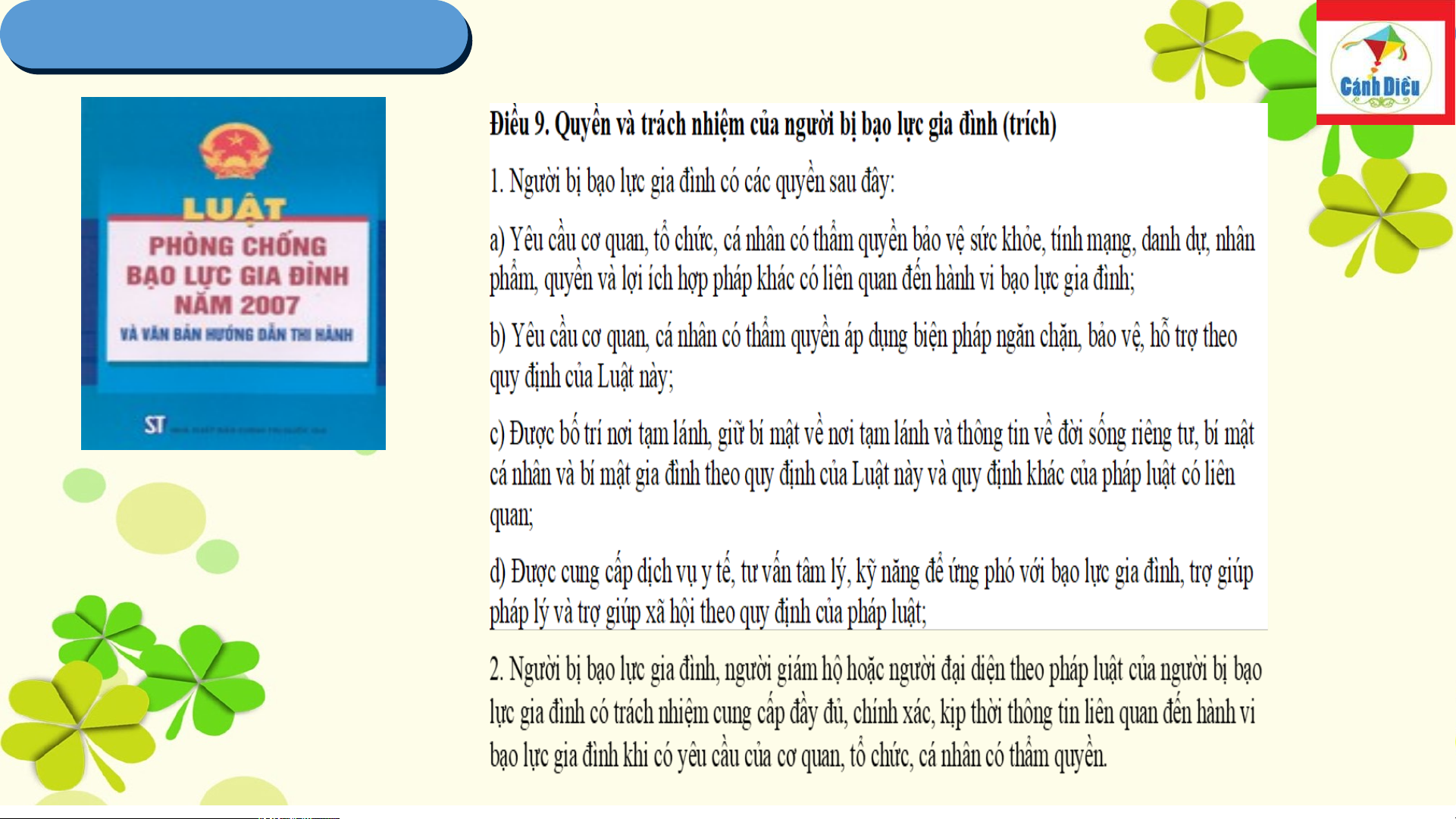 - Nạn nhân bạo lực gia đình được quyền yêu cầu các cơ quan, tổ chức,