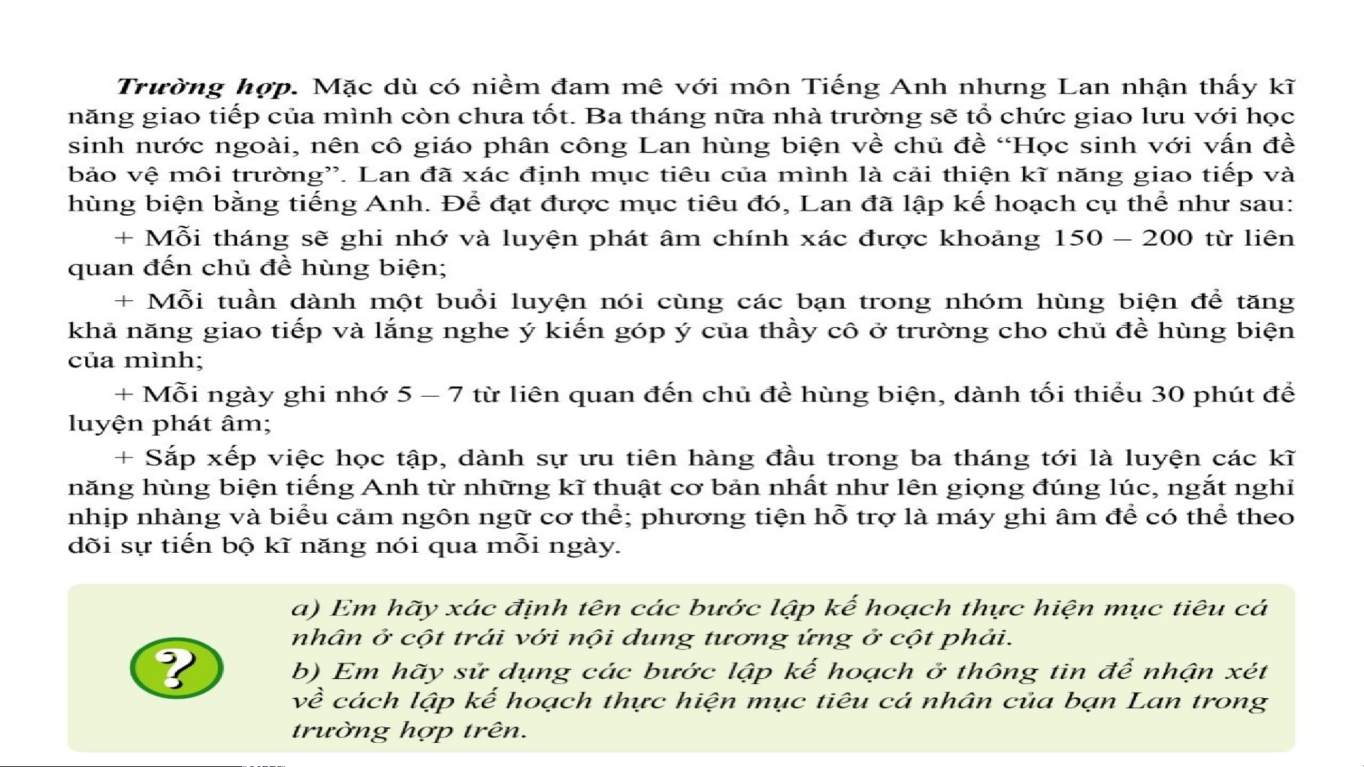 b. Lập kế hoạch thực hiện mục tiêu cá nhân