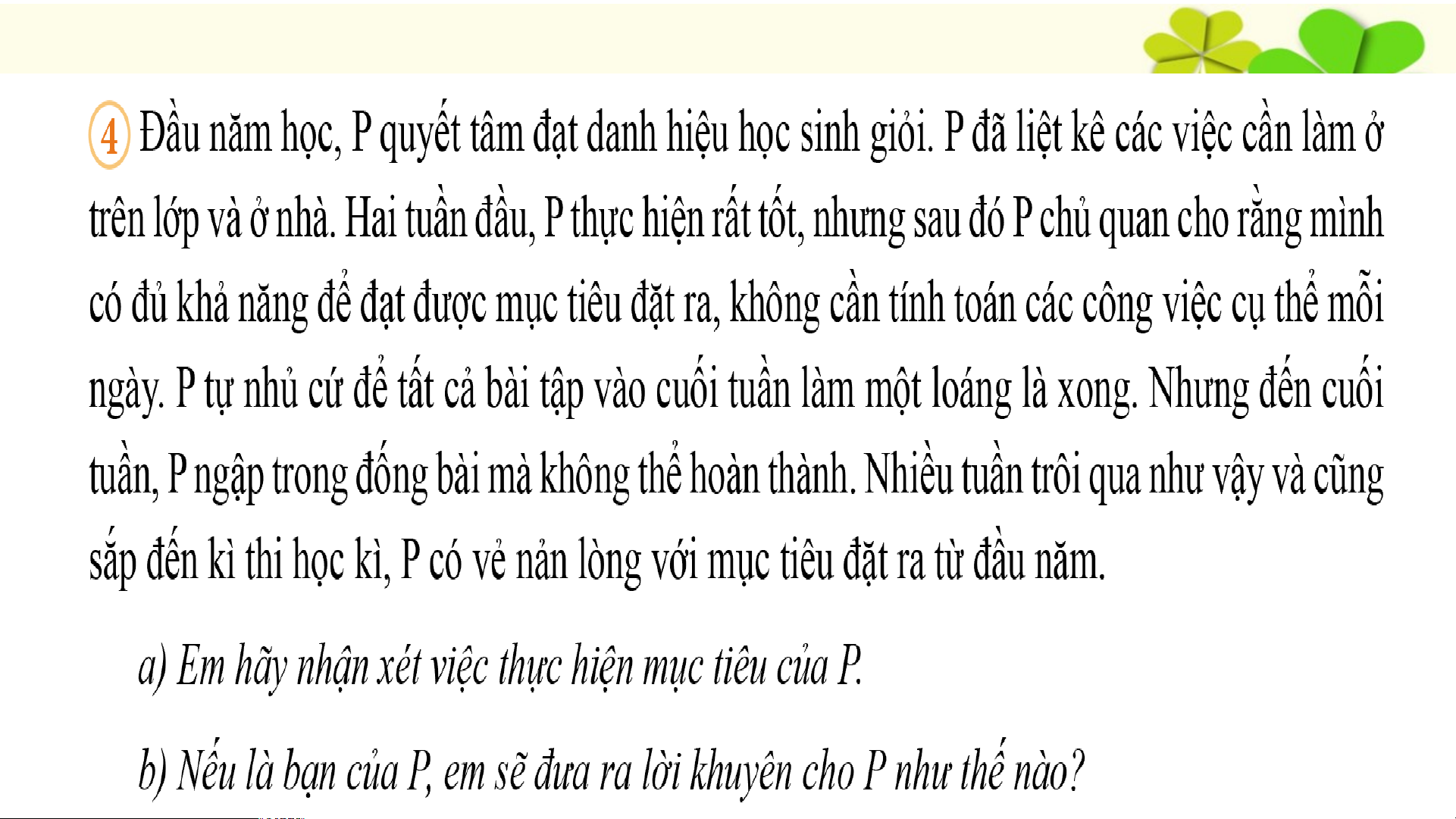 •- Để đạt được mục tiêu đó, em cần phải làm gì?