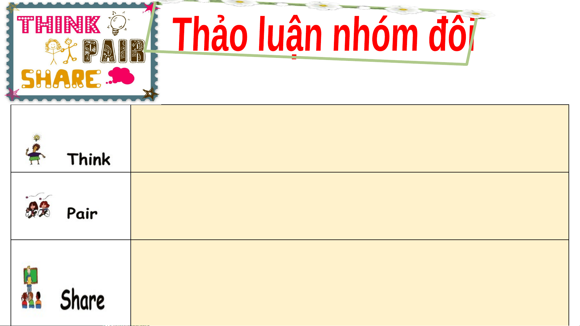 “Pair”: Trao đổi với bạn suy nghĩ của mình.