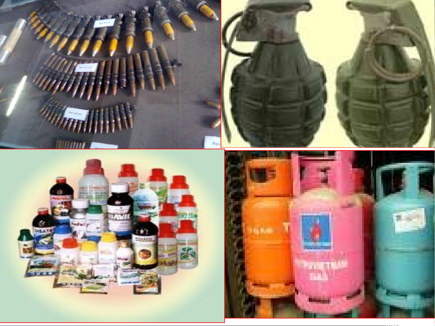 và cho biết các loại vũ khí, cháy, nổ và chất độc hại ?