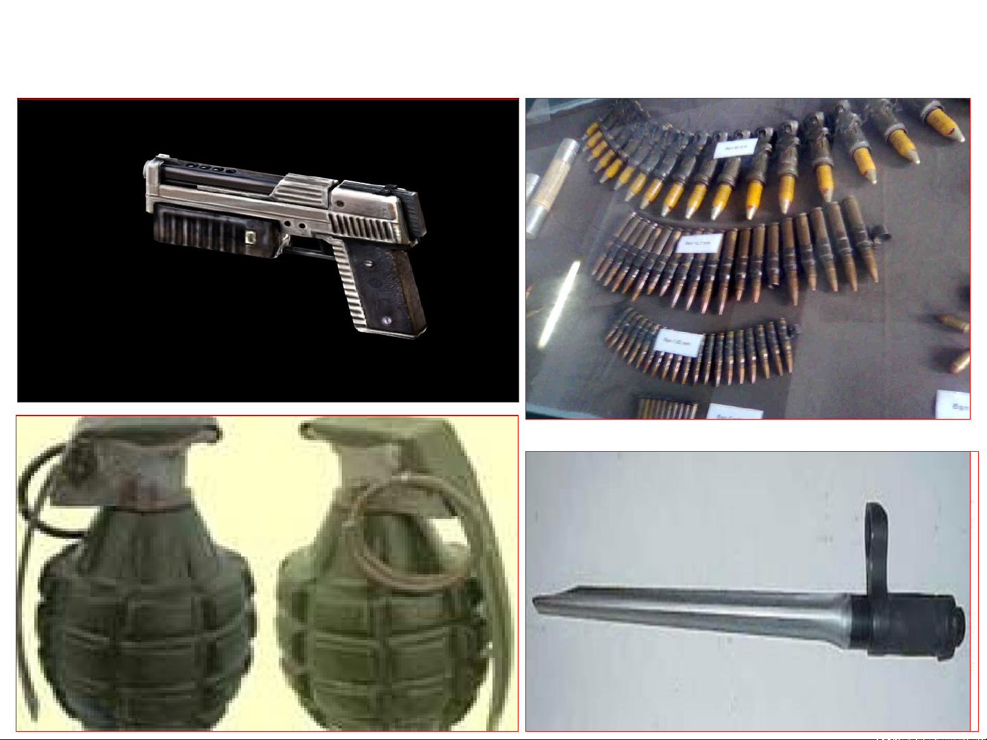 Các loại vũ khí, chất nổ, chất cháy, chất độc hại Súng Đạn Lựu đạn Quả bom nặng 230 kg Lưỡi lê