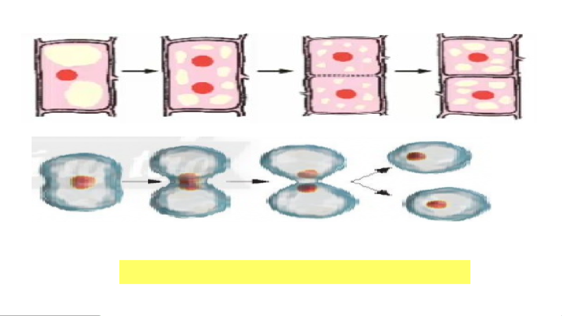 nhau. Ở tế bào động vật, hình thành eo thắt tạo thành 2 tế bào mới tách rời nhau Lớn lên Phân chia Tế bào