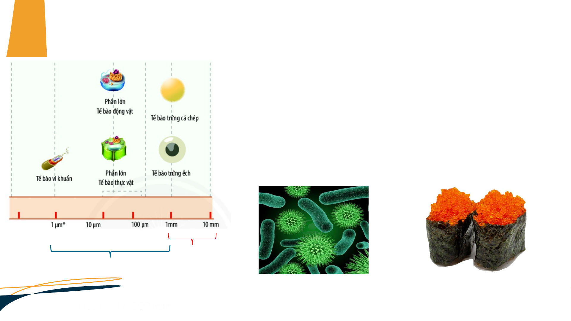 bào vi khuẩn, tế bào động vật,… Tế bào trứng cá Mắt thường Kính hiển vi quang học Tế bào vi khuẩn Kích thước tế bào Hình dạng tế bào