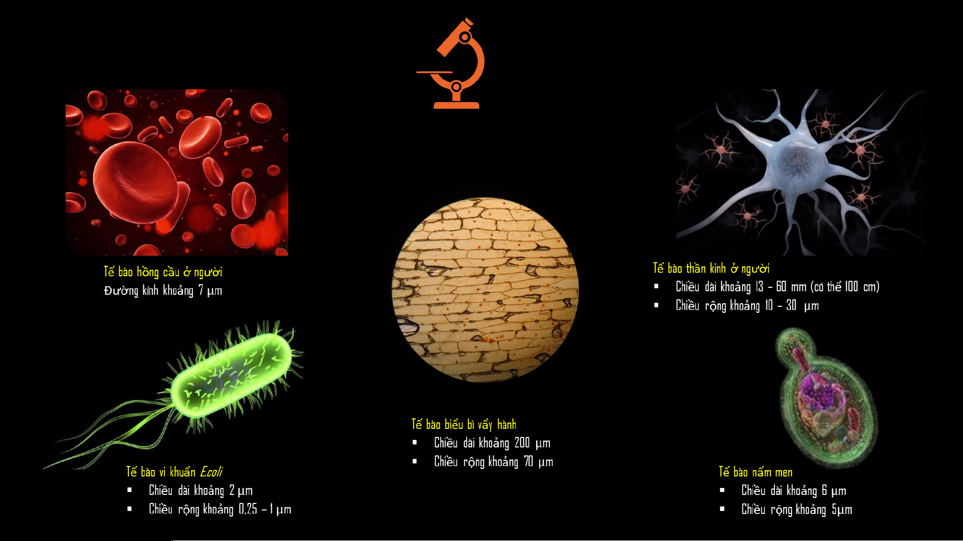- Tế bào có kích thước nhỏ, phần lớn không quan sát được bằng mắt thường mà phải sử dụng kính hiển vi.