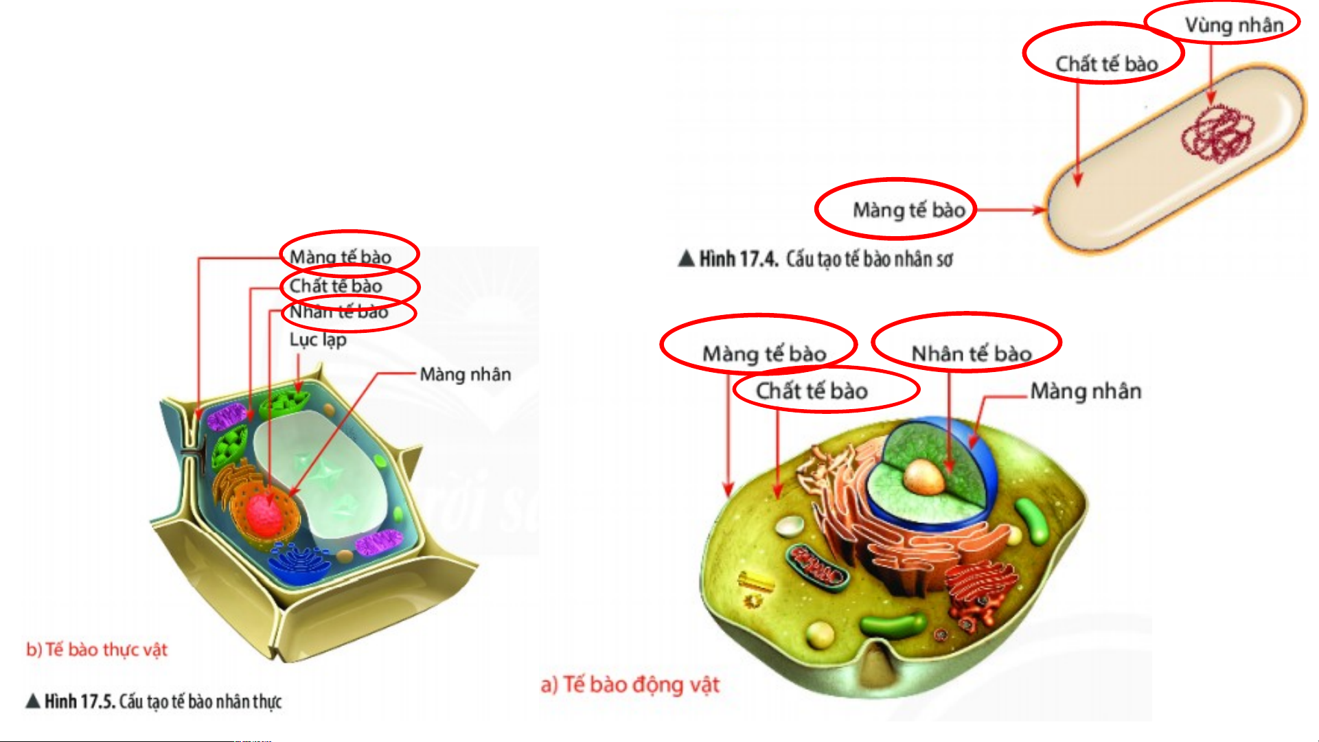 II. Các thành phần chính của tế bào Quan sát hình 17.4, 17.5 hãy gọi tên các thành