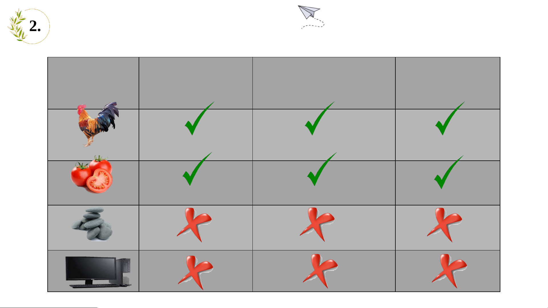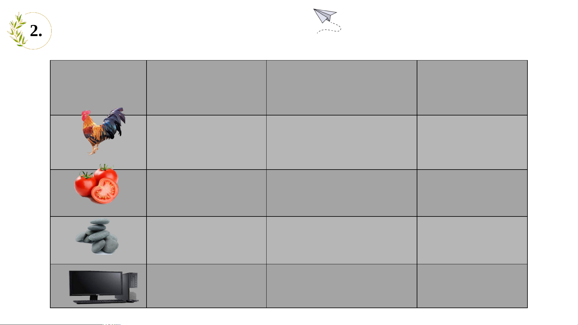 2. VẬT SỐNG VÀ VẬT KHÔNG SỐNG Con gà Cây cà chua