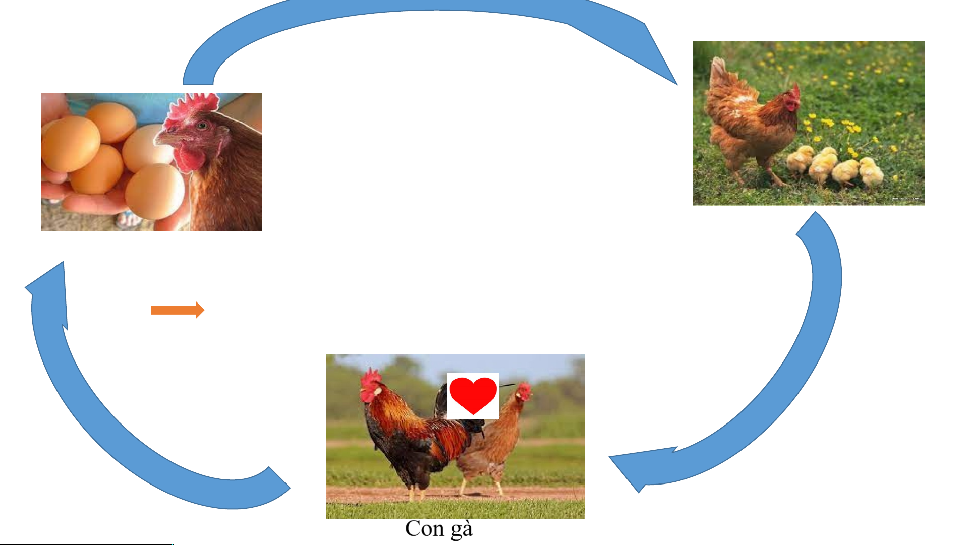 Gà thụ tinh, gà mái sẽ tiếp tục đẻ và ấp trứng --> gà con.