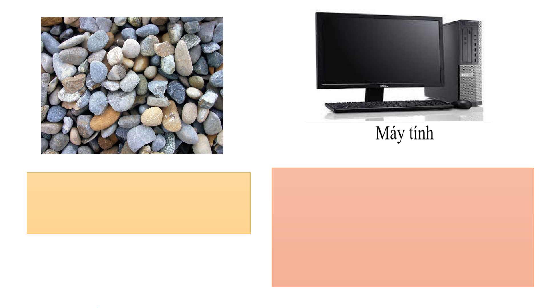 Em hãy cho biết các vật trong hình có đặc điểm gì khác nhau? Đá sỏi Máy tính