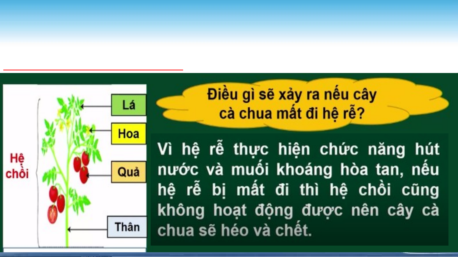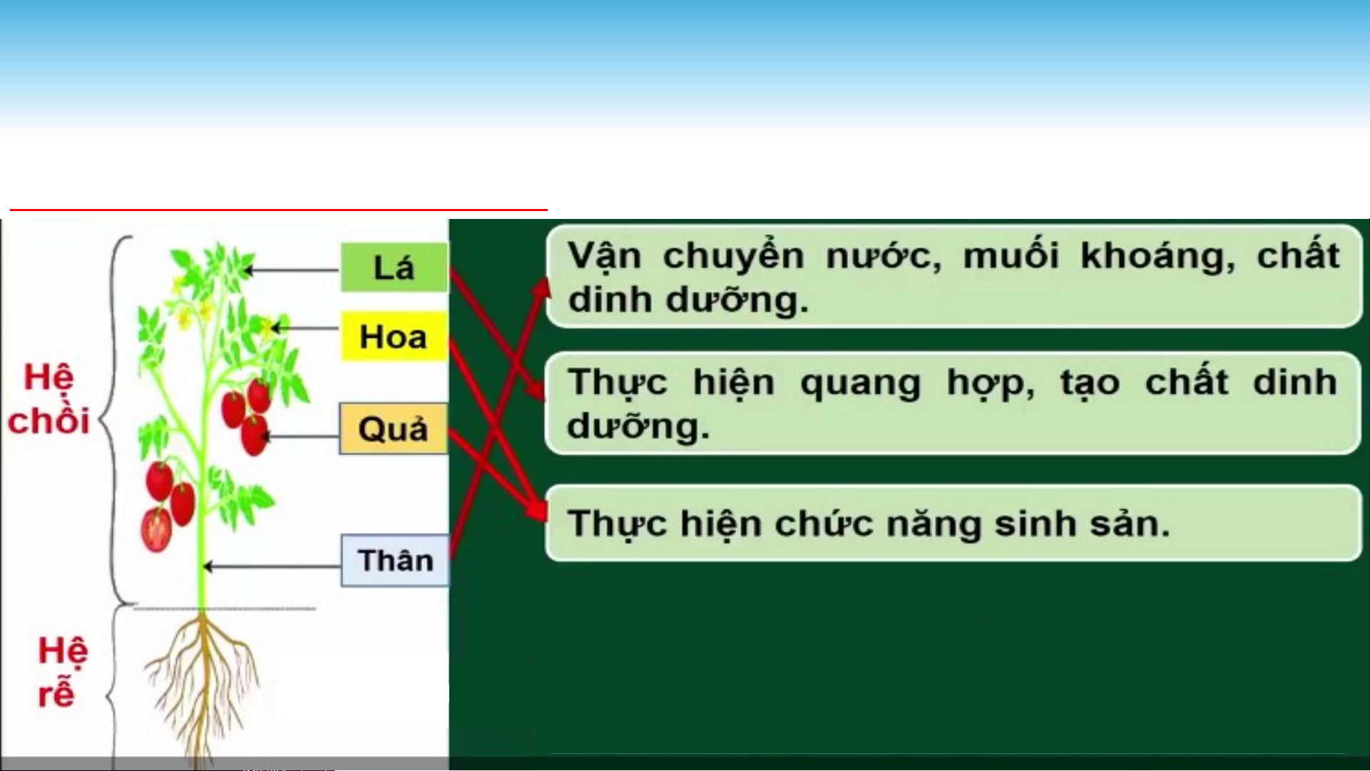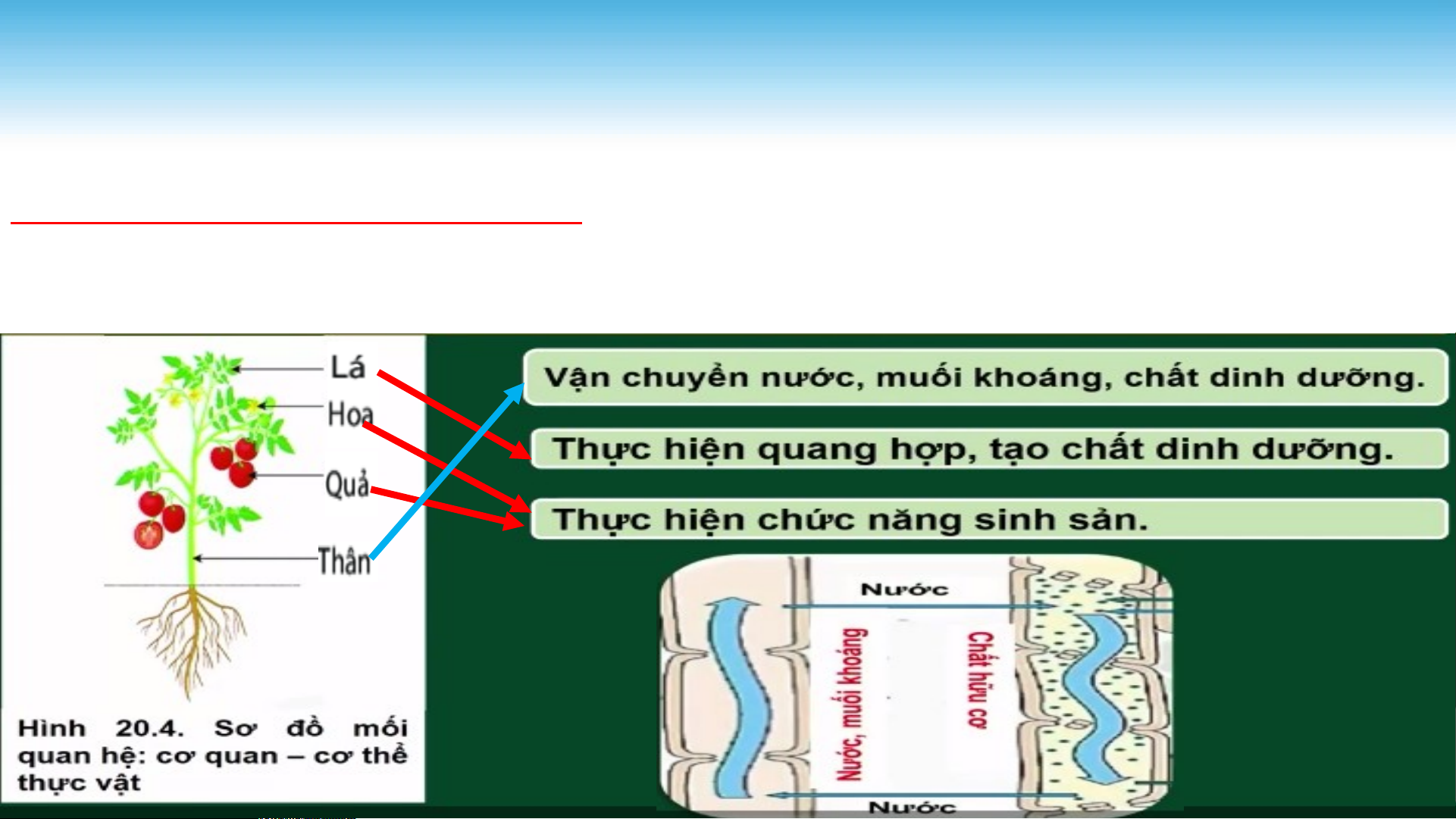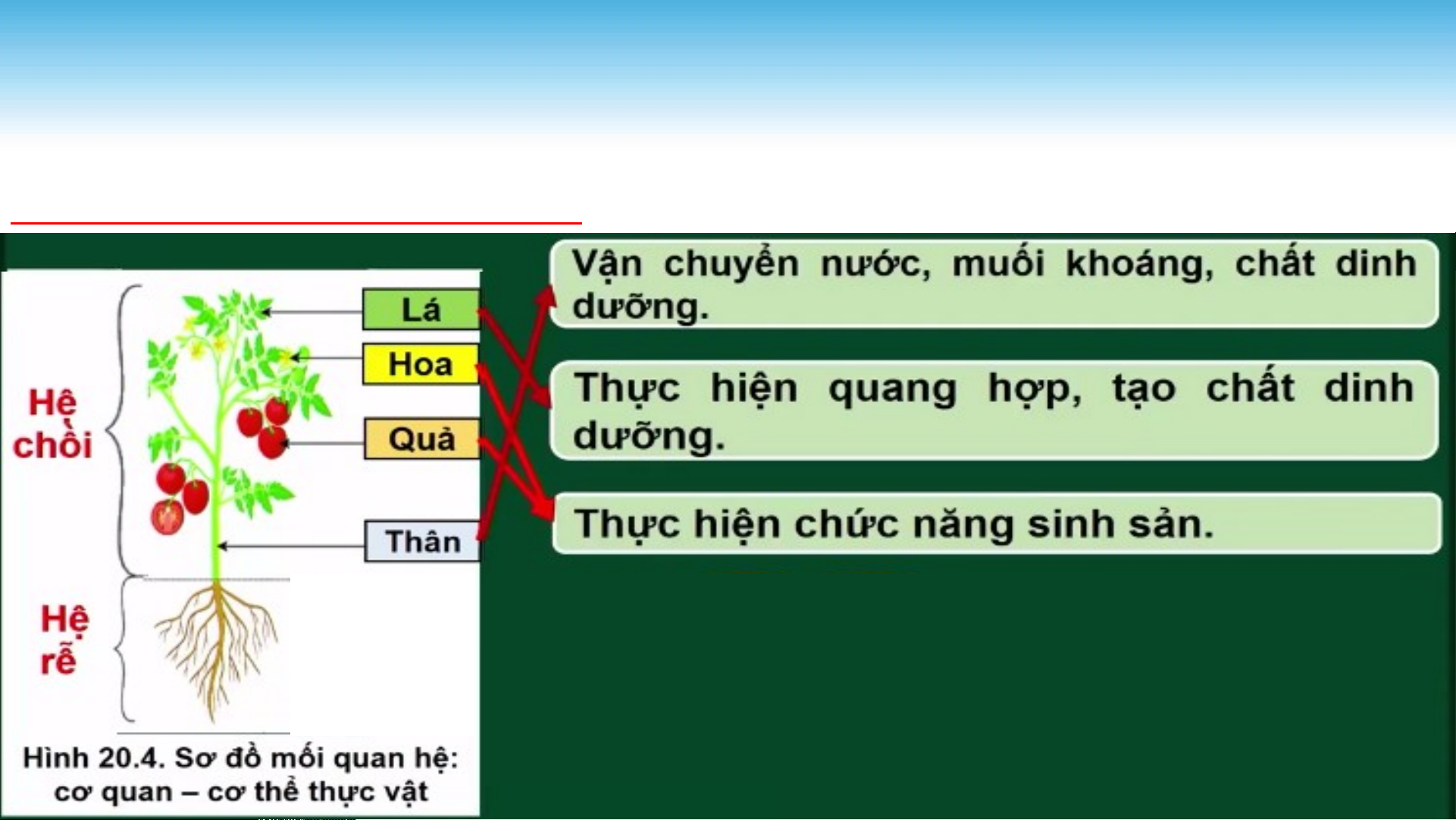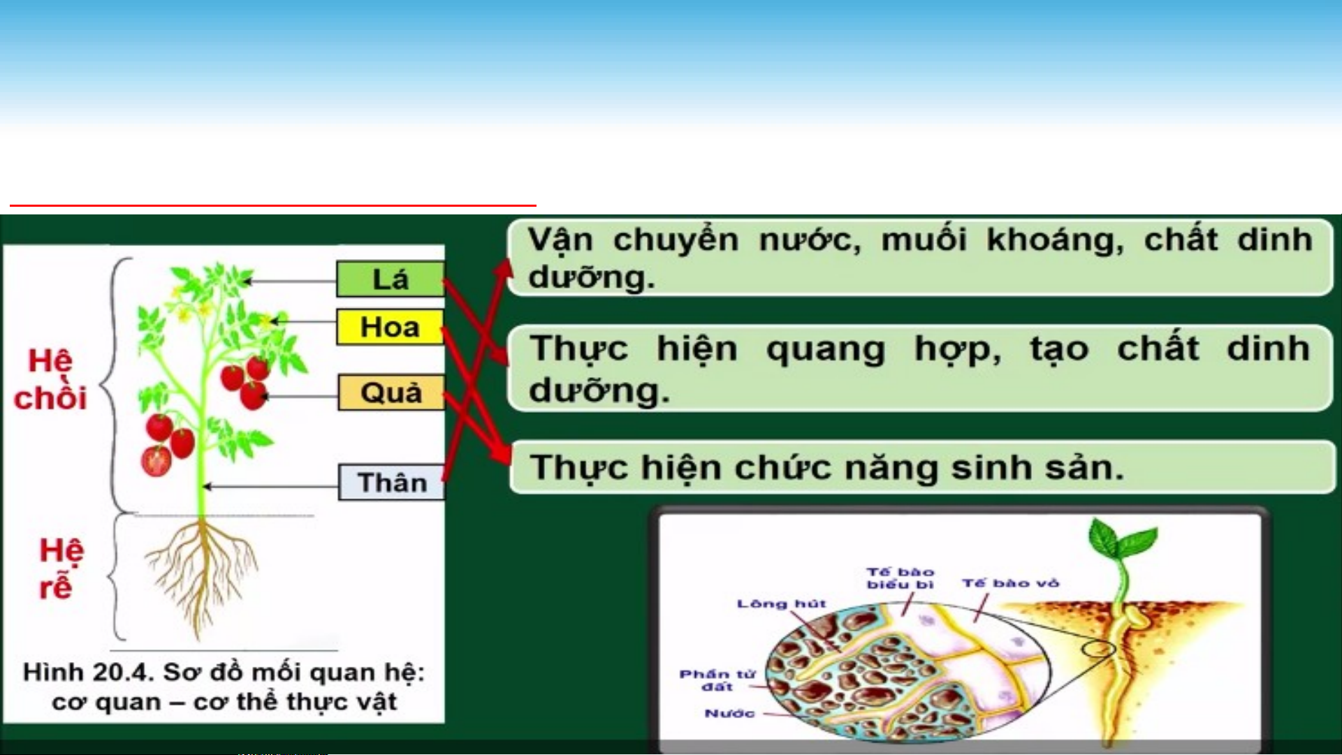+ Ở cơ thể thực vật, các hệ cơ quan được chia thành hệ chồi và hệ rễ.