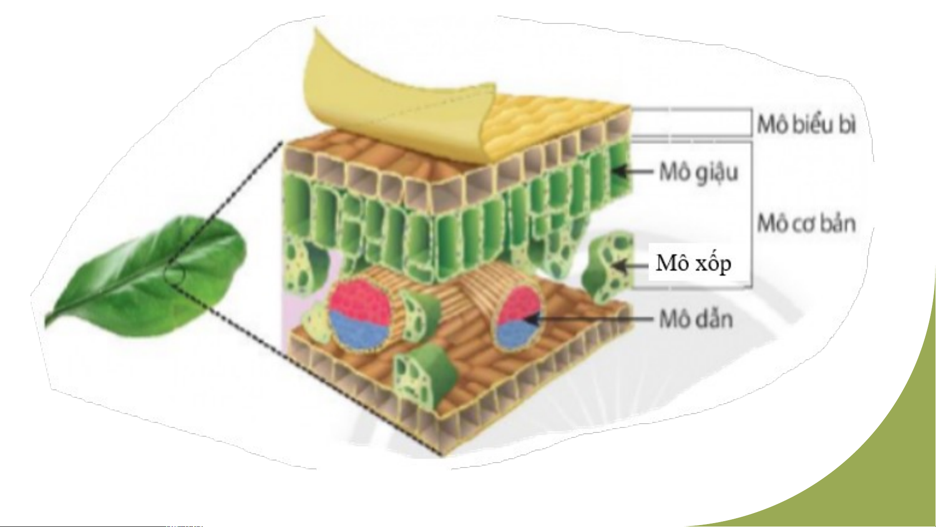 Hình 20.3a: Các loại mô cấu tạo nên lá cây