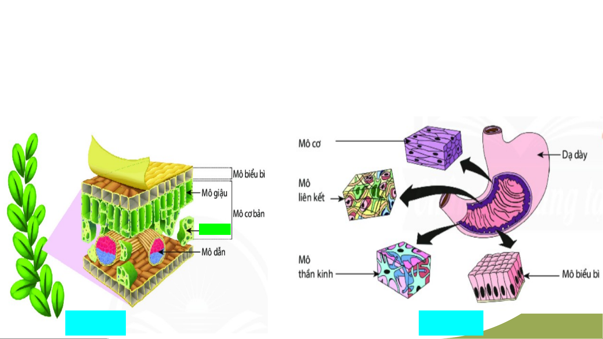 1. Kể tên các mô tương ứng có trong các cơ quan: lá cây, dạ dày.