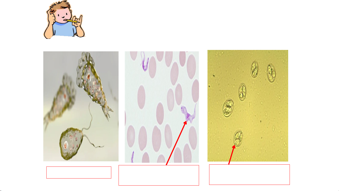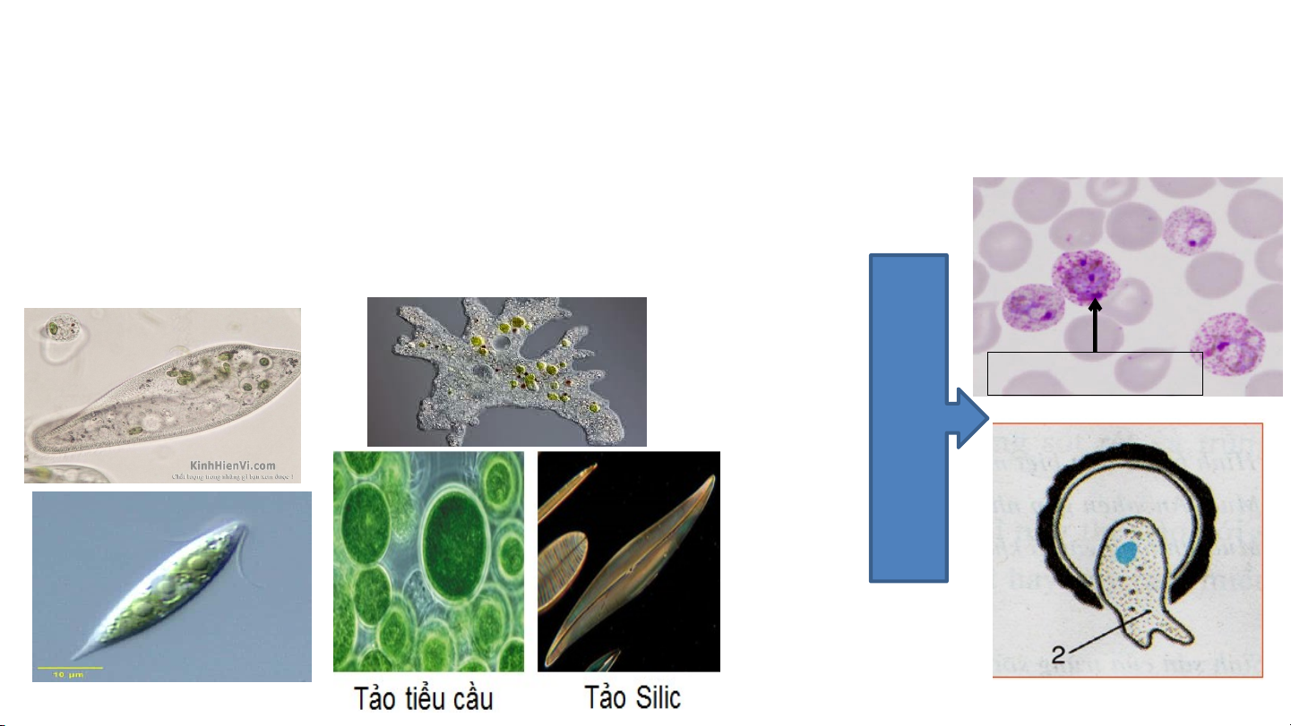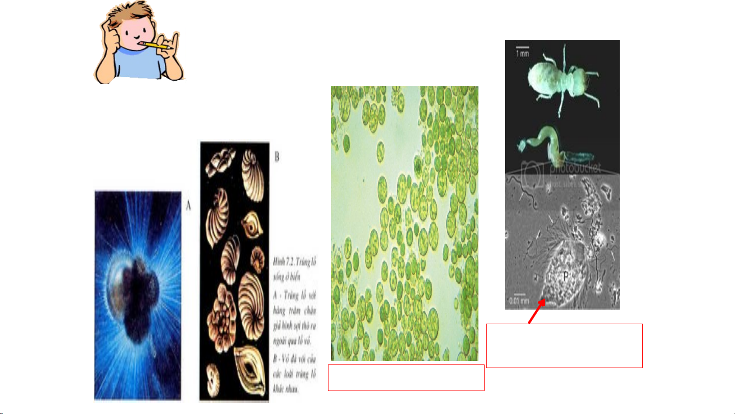 trên cơ thể sinh vật khác. VD: Ở nước K í si Trùng sốt rét n Trùng biến hình h Trùng giày Trùng roi xanh Trùng kiết lị