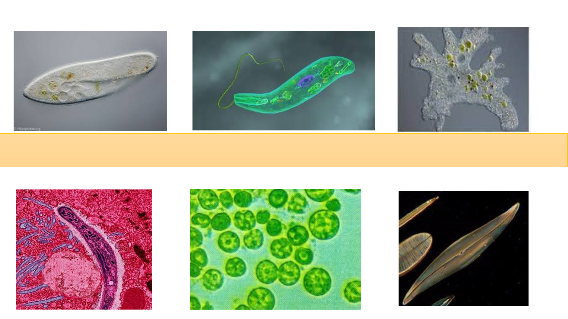 có thể quan sát bằng mắt thường. Trùng đế giày Trùng roi xanh Trùng biến hình 1 2 3 Trùng sốt rét Tảo tiểu cầu Tảo silic 4 5 6