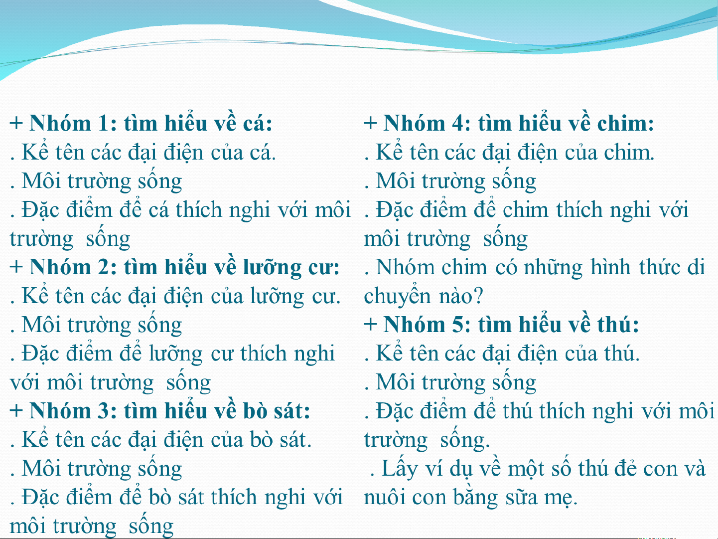 - Tìm hiểu các nhóm động vật có xương sống trong tự nhiên