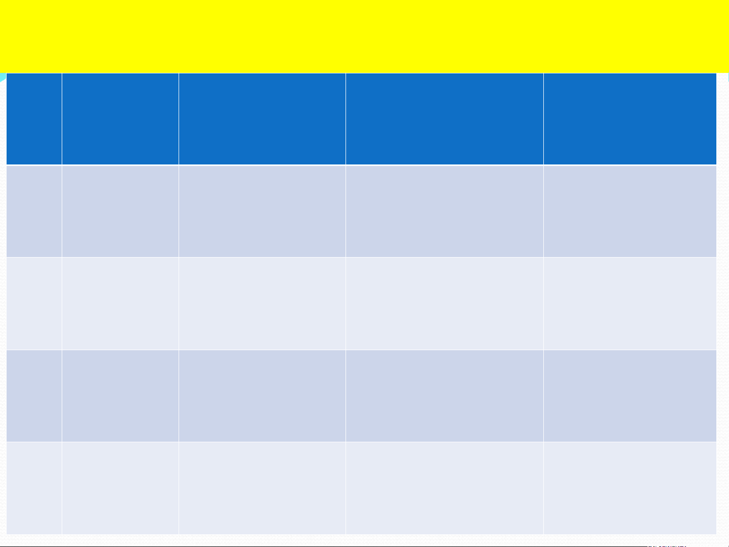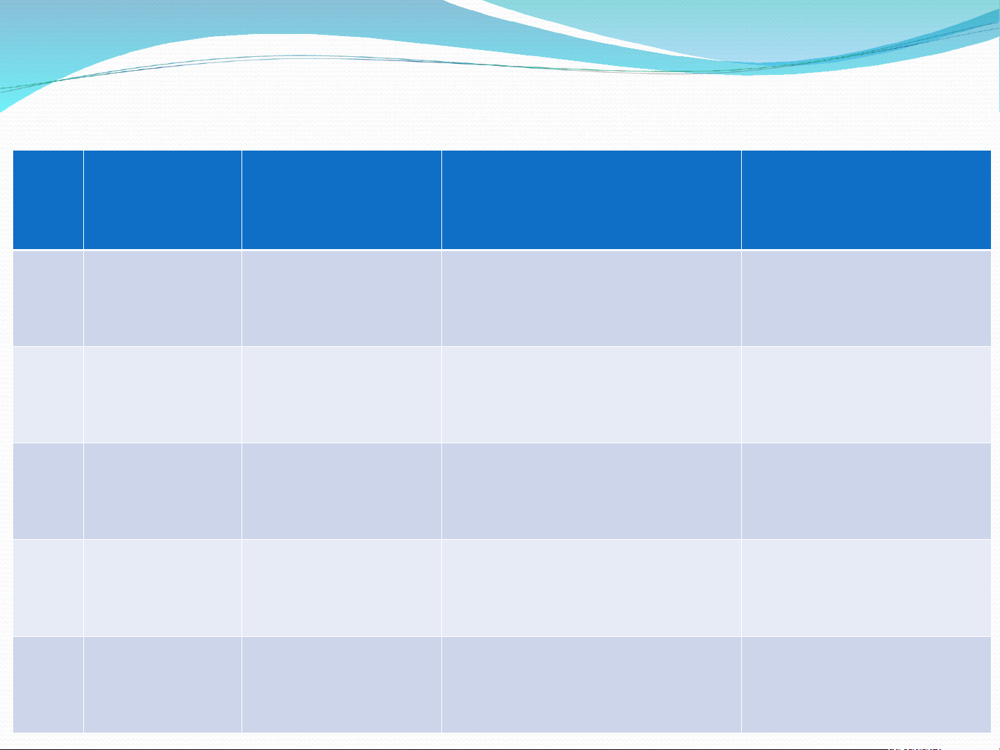 Thảo luận nhóm vòng mảnh nghép: STT NHÓM ĐẠI DIỆN ĐẶC ĐIỂM CẤU MÔI TRƯỜNG ĐỘNG TẠO SỐNG VẬT 1 Ruột khoang 2 Giun 3 Thân mềm 4 Chân khớp