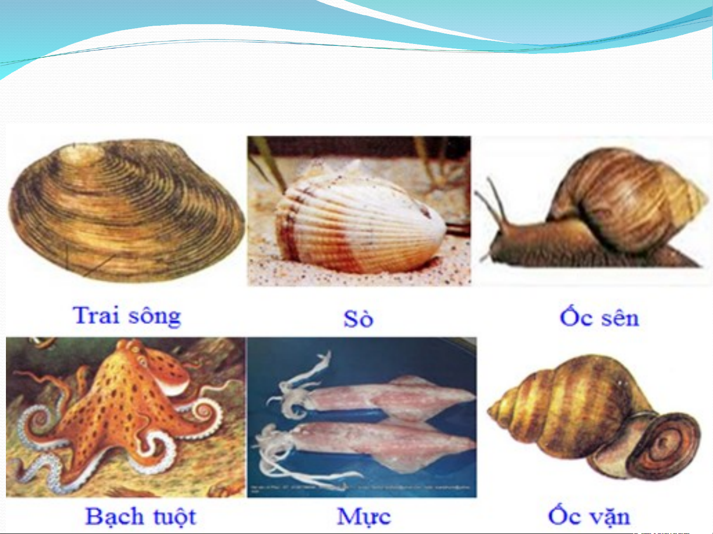 . Kể tên các đại diện của nhóm thân mềm, những đại diện nào được sử dụng làm thực phẩm? . Đặc điểm cấu tạo . Môi trường sống