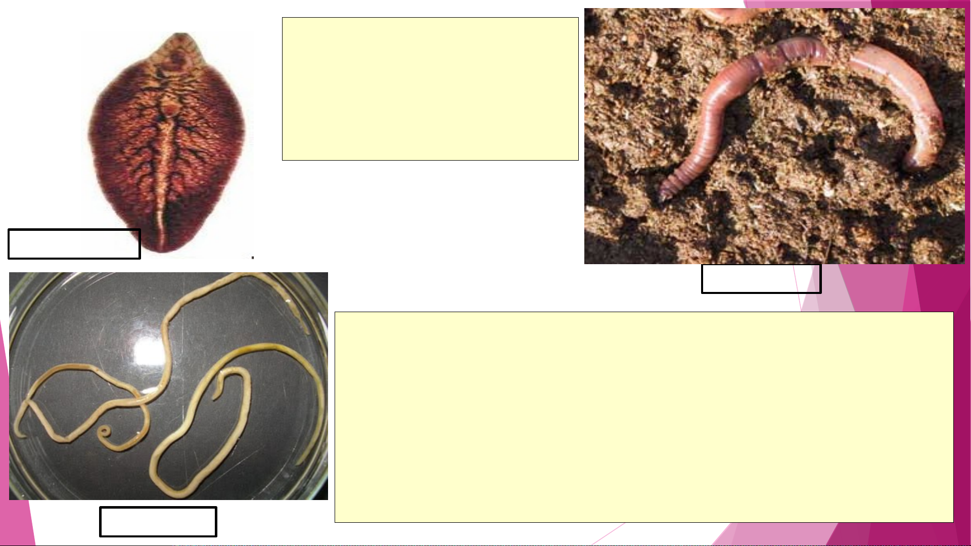 - Đại diện: Sán lá gan, giun đũa, giun đất.