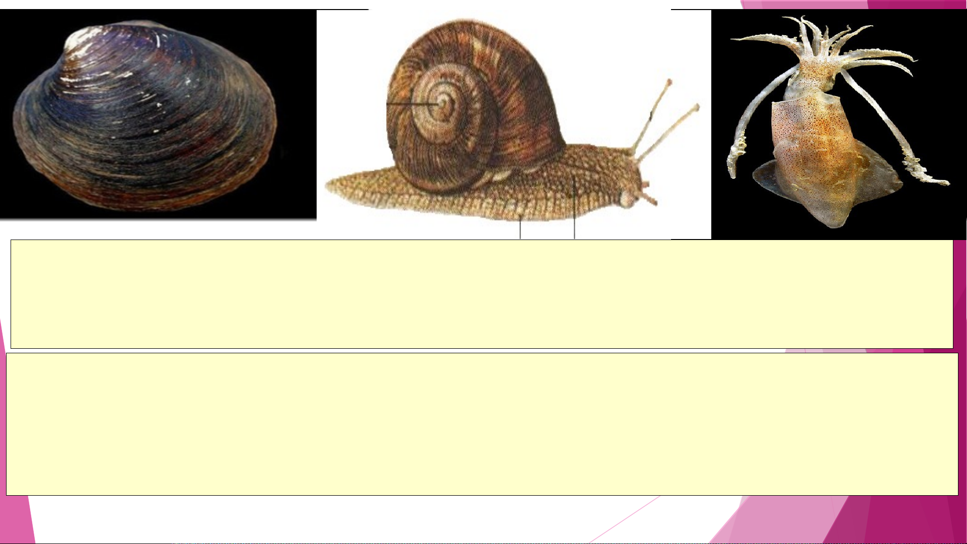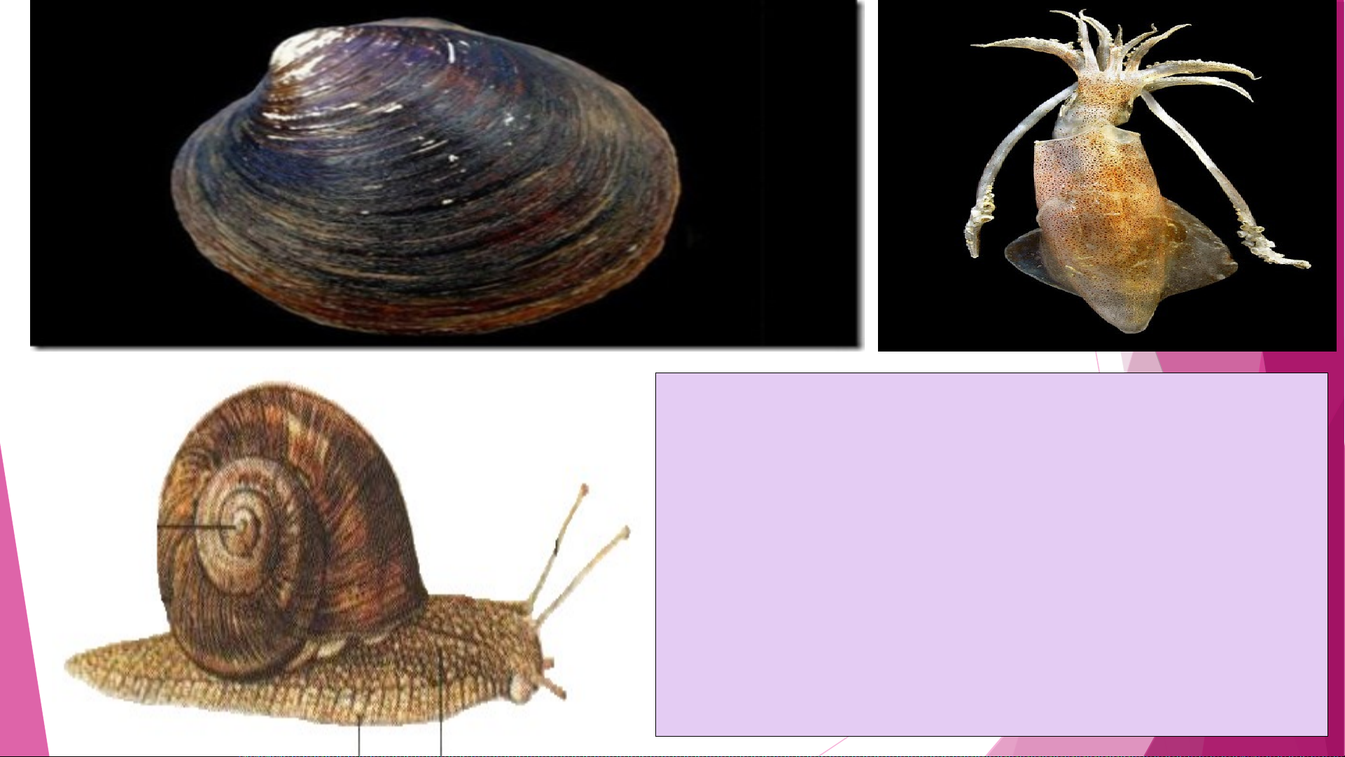Các đại diện thuộc nhóm Thân mềm: mực, ốc, trai.