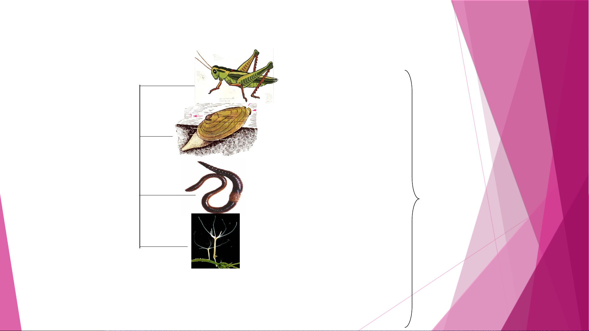 giun đũa, sán lá gan, thủy tức, san hô, trai sông, mực ống, ốc sên...