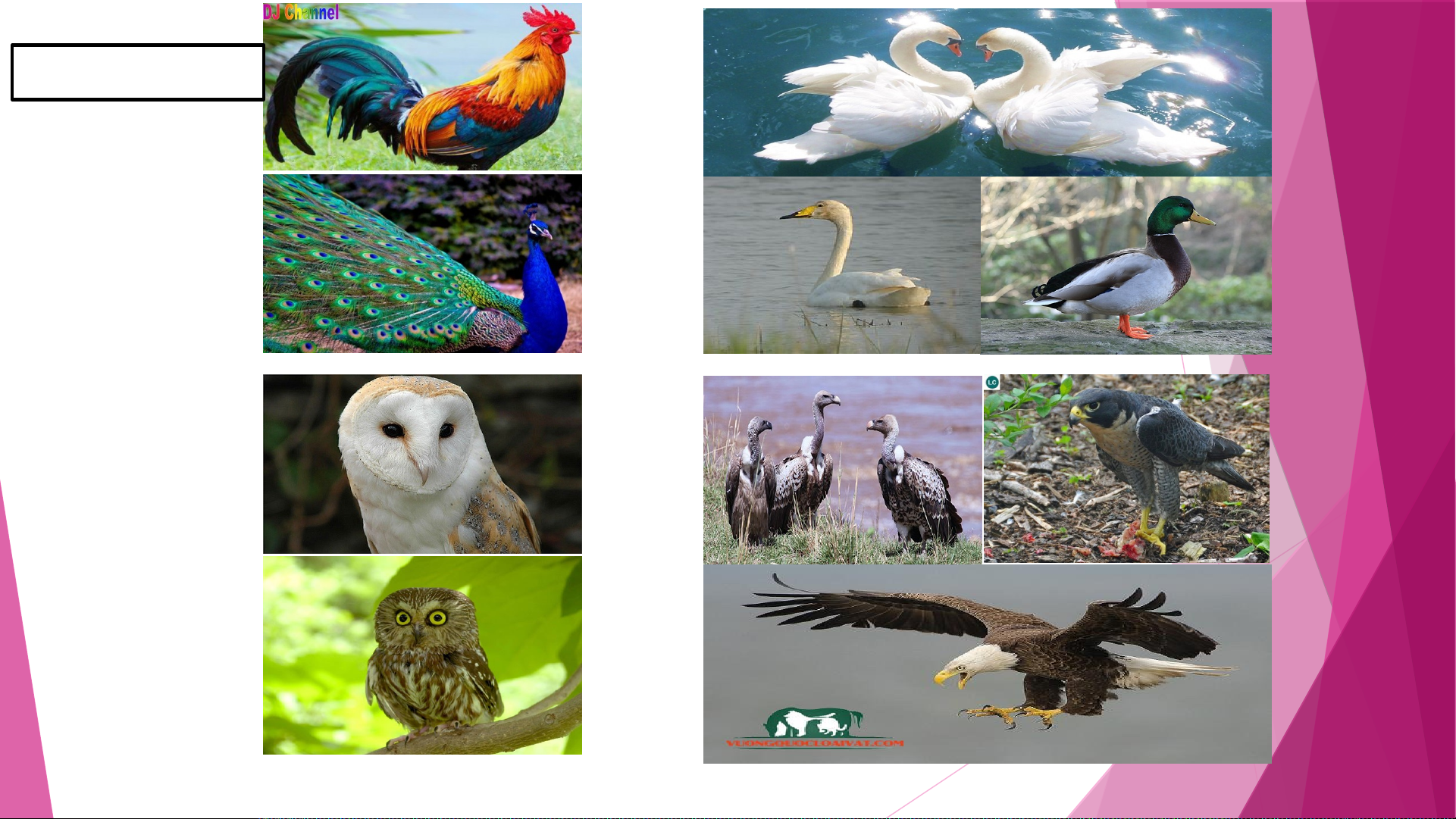 - Trên không: Đại bang, ngỗng trời, hải âu…
