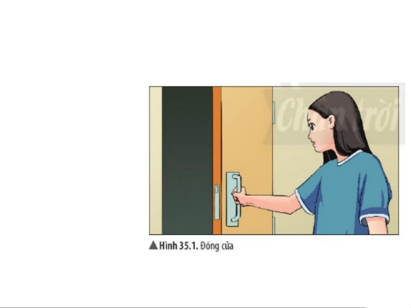 Bạn dùng tay đẩy cánh cửa.
